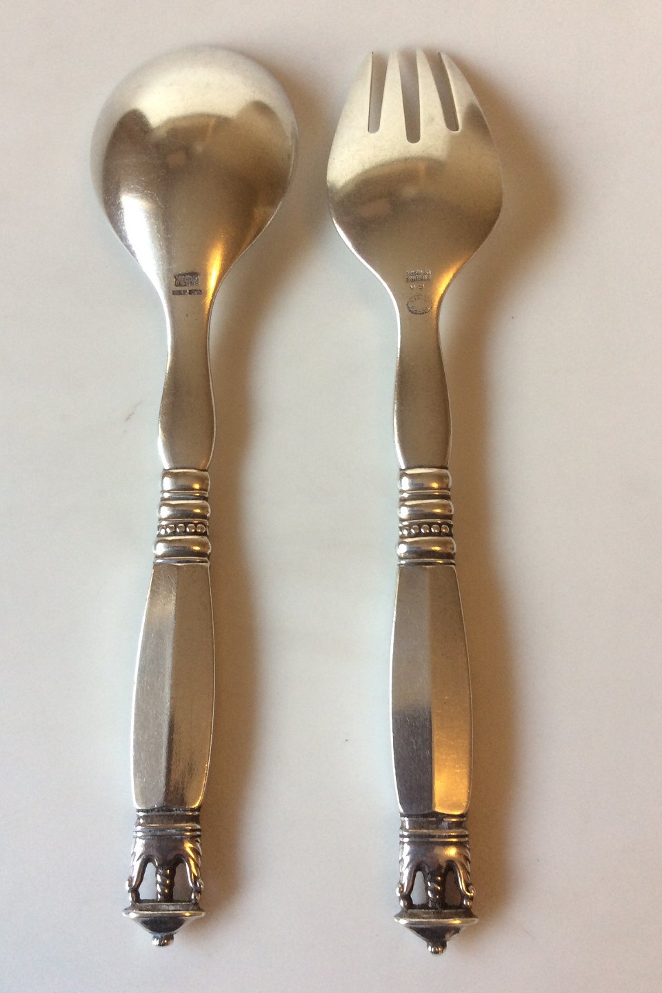 Georg Jensen Sterling Silver Ornamental Salad Set No 60. Measures 21.3 cm / 8 25/64"