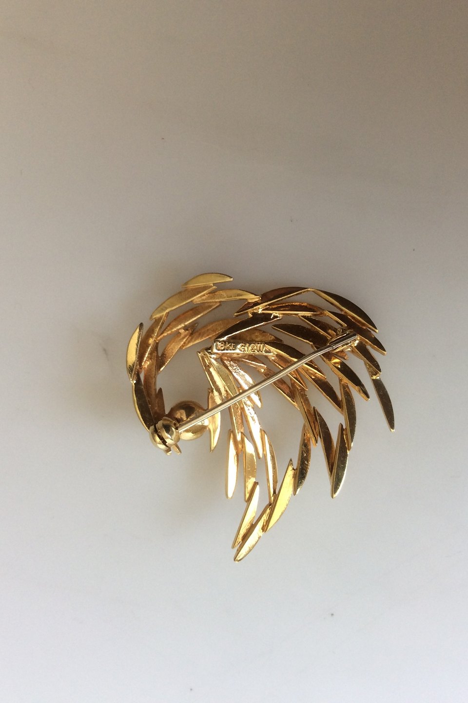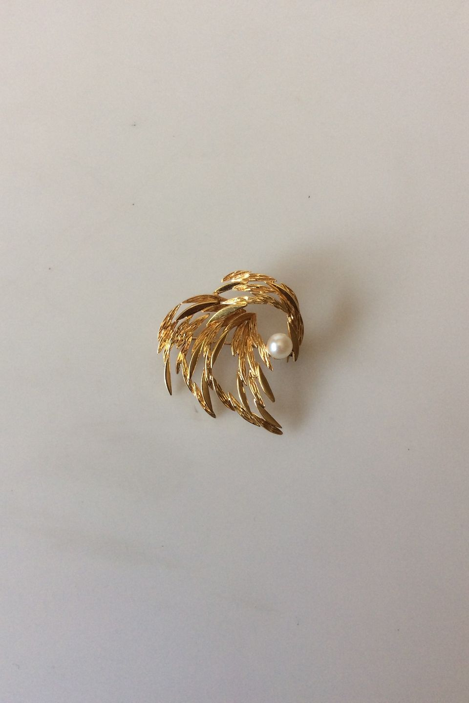 Georg Jensen & Wendel, 18 Kt. Gold Brooch with Pearl. Measures 3.5 cm / 1 3/8 in. x 3.5 cm / 1 3/8 in. Weighs 8 g / 0.30 oz.