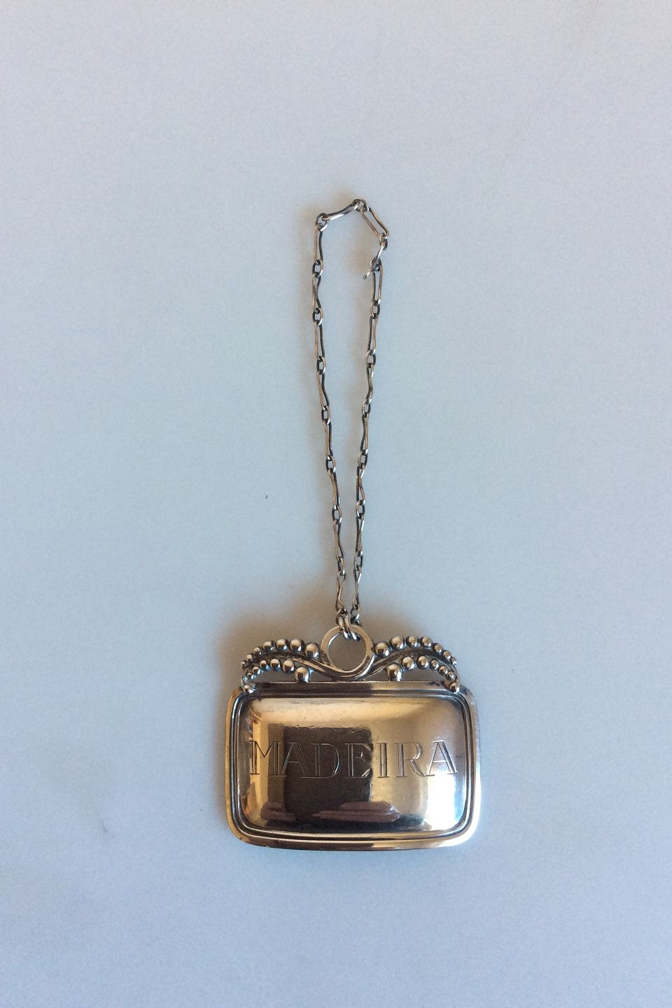 Georg Jensen Sterling Silver Bottle Name Plate "Madeira" No 293. Måler 4 cm x 3 cm / 1 37/64" x 1 3/16". Marks from 1933-1944