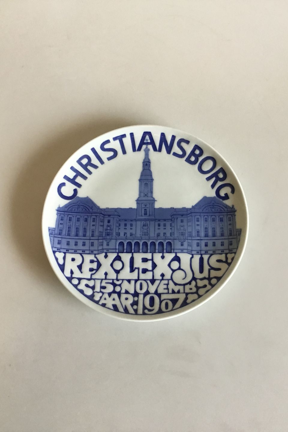 Porsgrund Commemorative Plate from 1907. Christiansborg 15. November 1907. Measures 22 cm / 8 21/32". Rex - Lex - Jus