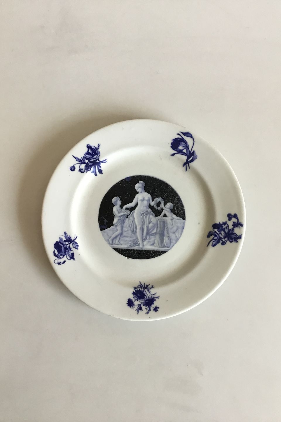 Aluminia Porcelain Plate with Blue Lithographic Print of Thorvaldsen motif. C. 1880. Measures 20.3 cm / 7 63/64"