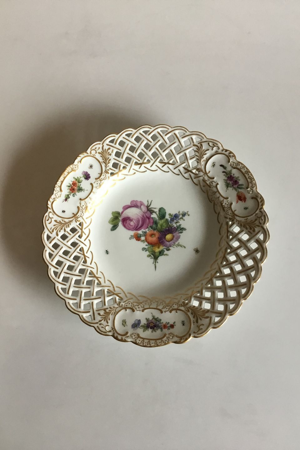 Royal Copenhagen Full Saxon Flower Plate with pierced Border. Measures 23.5 cm / 9 1/4"