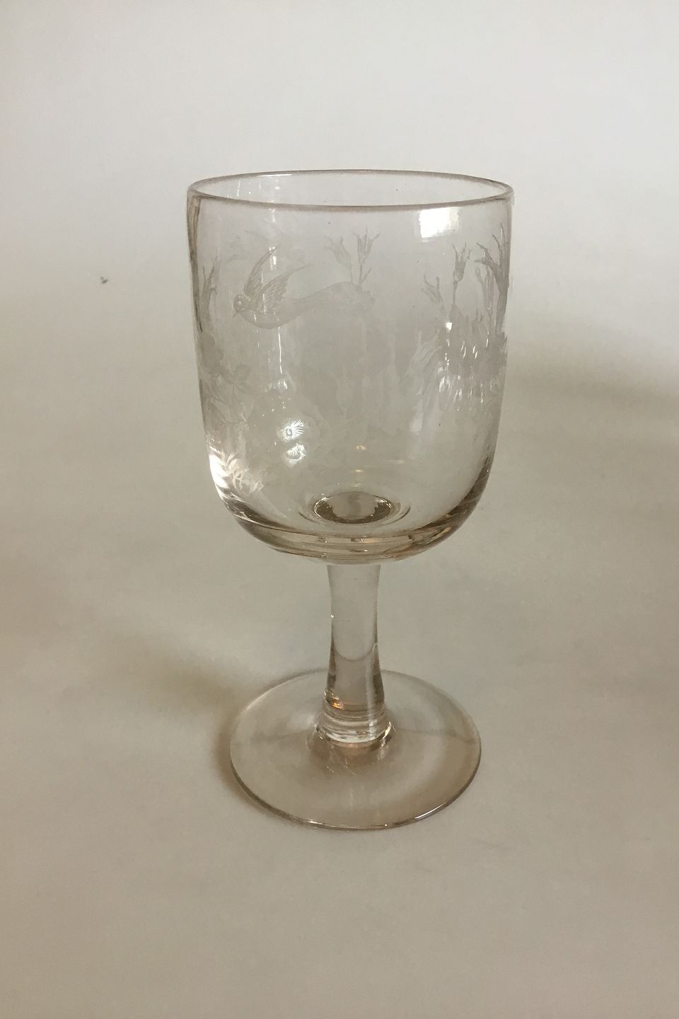 Kastrup Commenmorative Glass glass with Swallows, etching. No Engraving. Measures approx. 15.9 cm / 6 17/64 in.