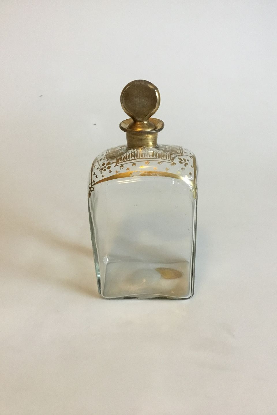 Square decanter with gilded cork. Measures 18 cm / 7 3/32 in.