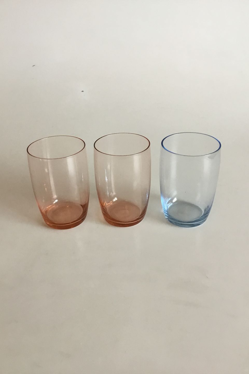 3 Soda Water Glasses, Blue and orange. Measures 9.6 cm / 3 25/32" Holmegaard