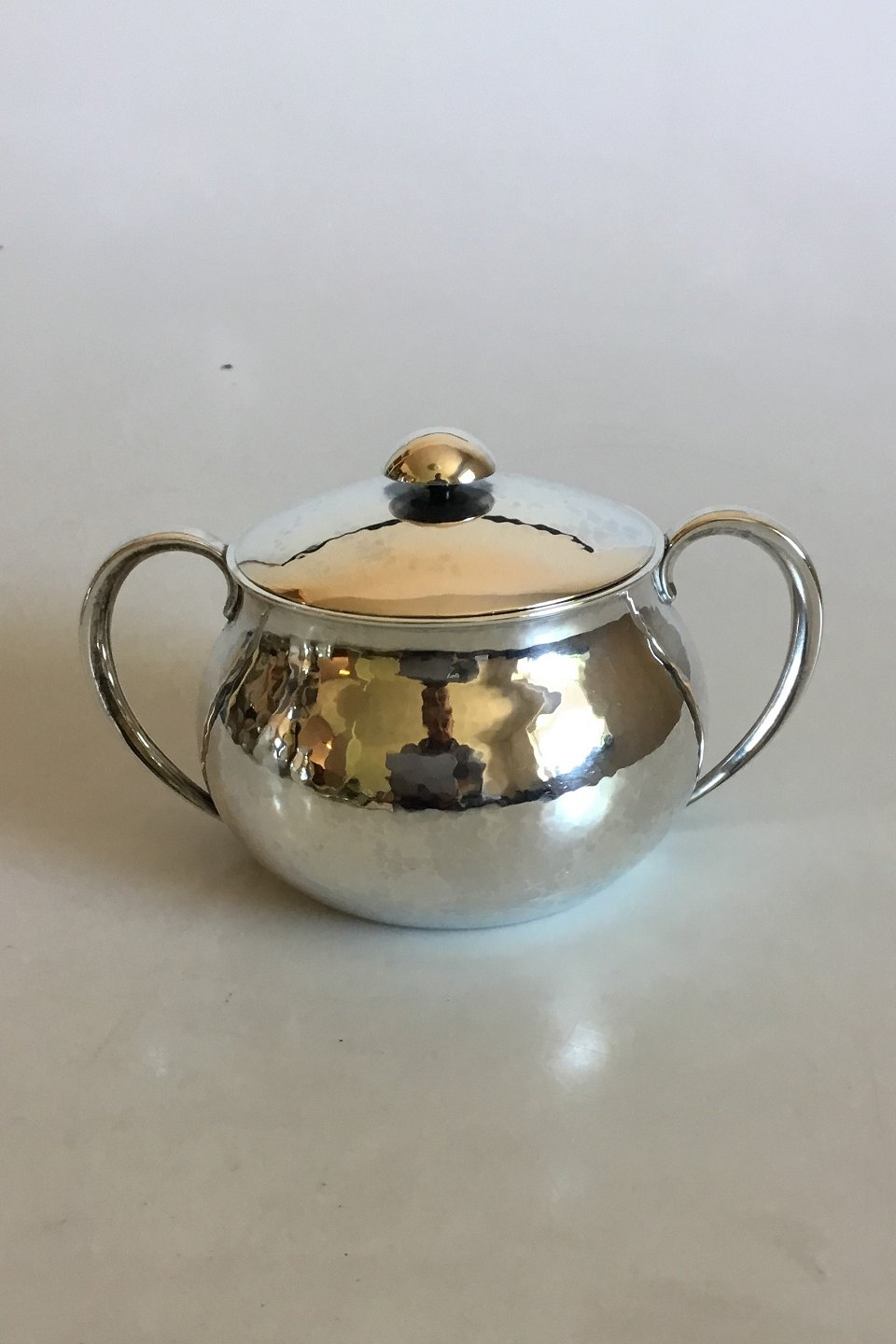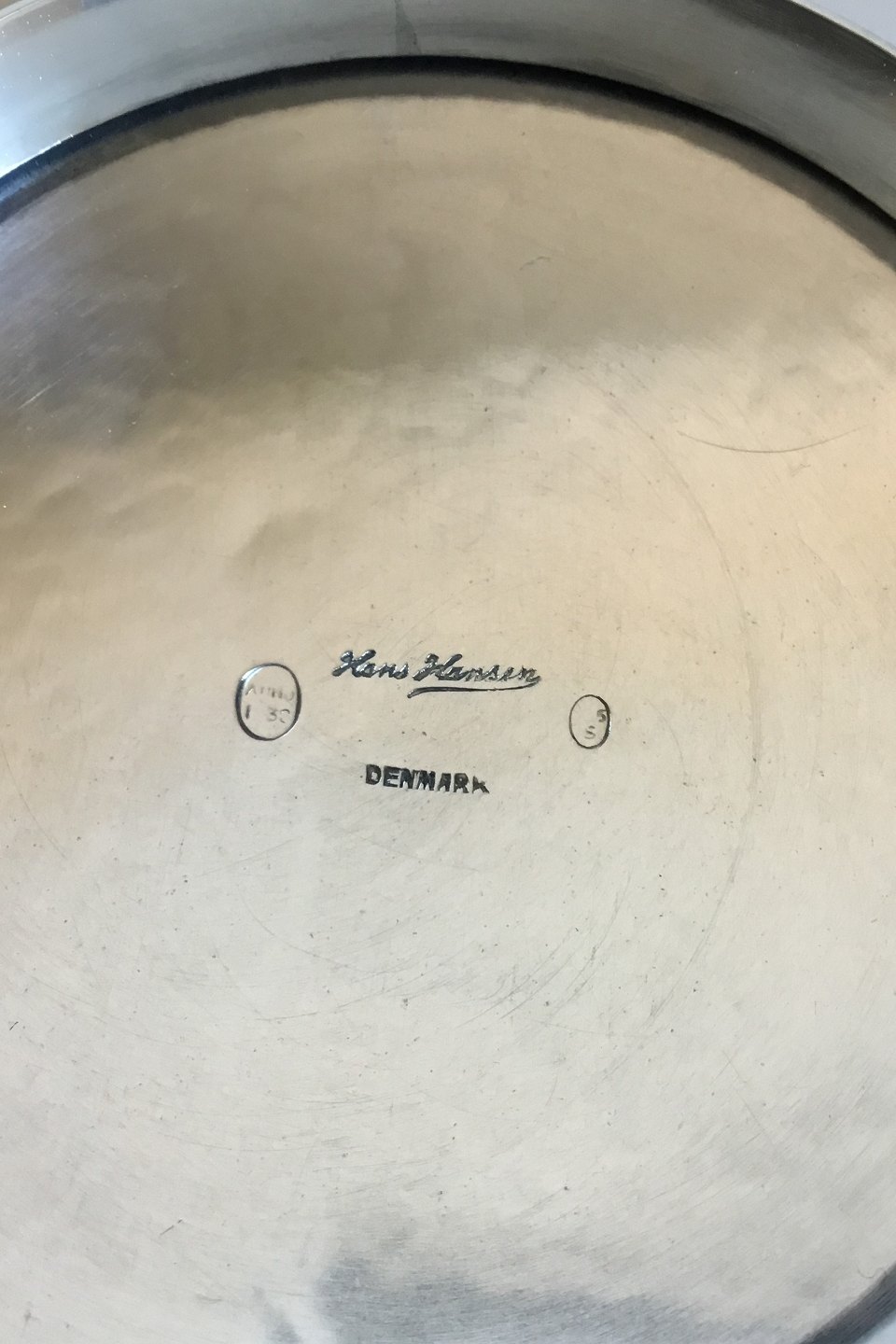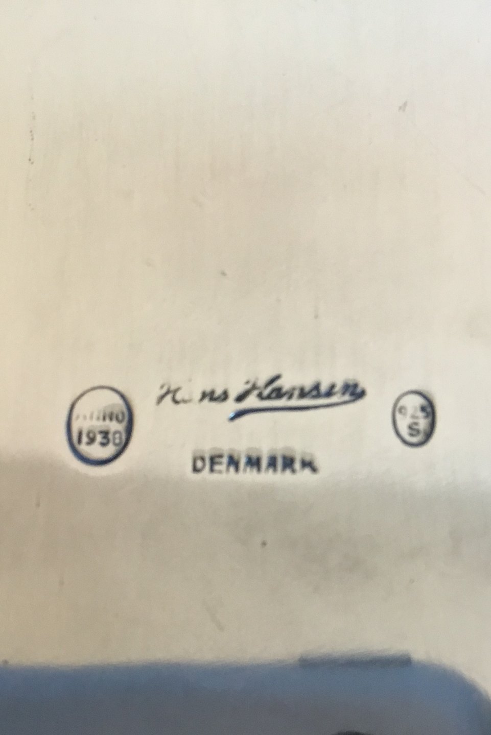 Hans Hansen Sterling Silver Coffee Set. Consists of Coffee Pot, Creamer and Sugar Bowl. Handle made of wood. Coffee Pot 20.5 cm / 8 5/64 in., weighs 619 g / 21.85 oz. Creamer 11.5 cm / 4 17/32 in., weighs 222 g / 7.85 oz. Sugar Bowl 9 cm / 3 35/64 in., weighs 400 g / 14.10 oz.