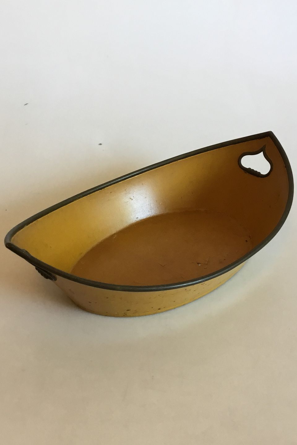 English Bread Basket of Yellow painted metal. Measures 31.5 cm / 12 13/32 in. x 19.5 cm / 7 43/64 in.
