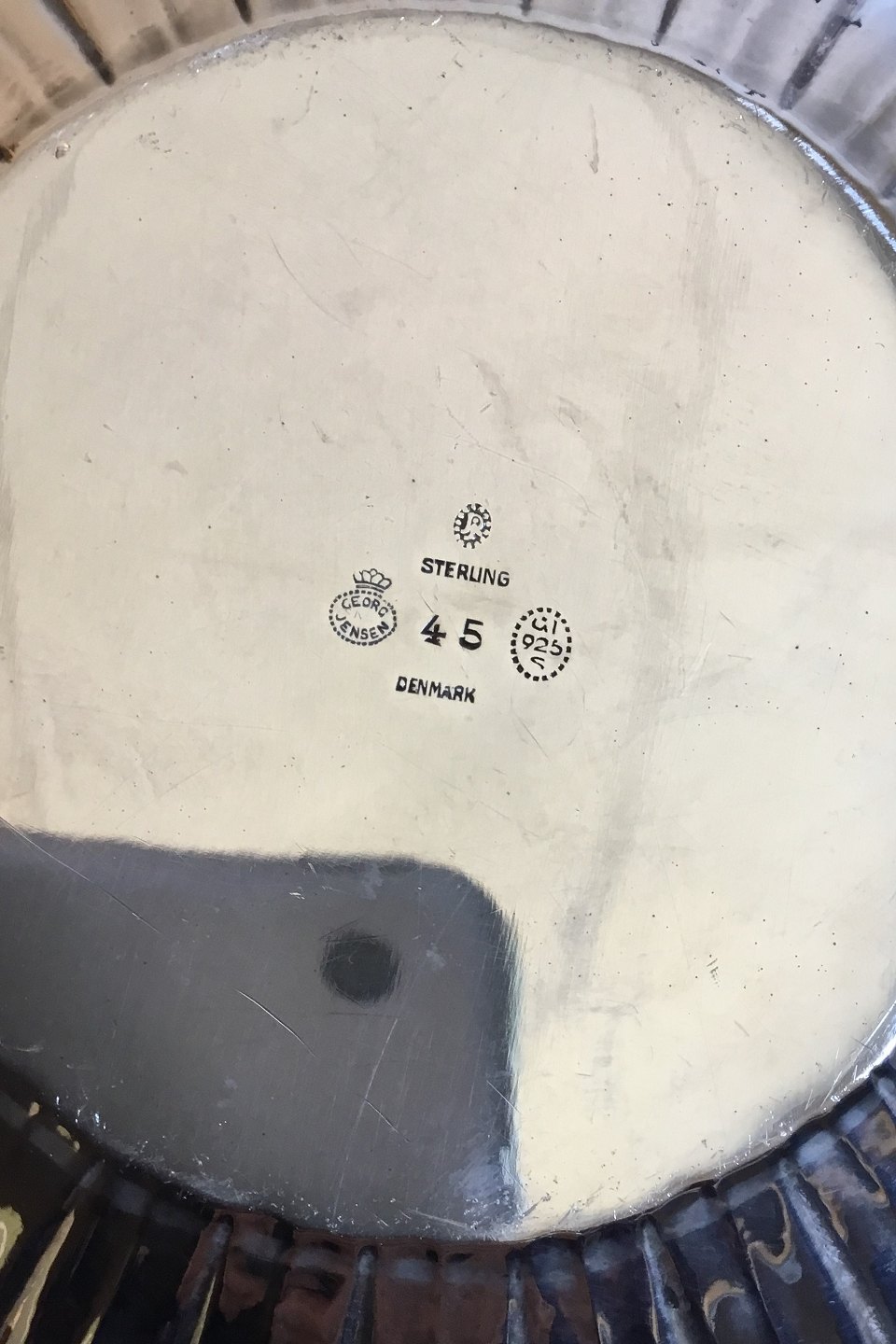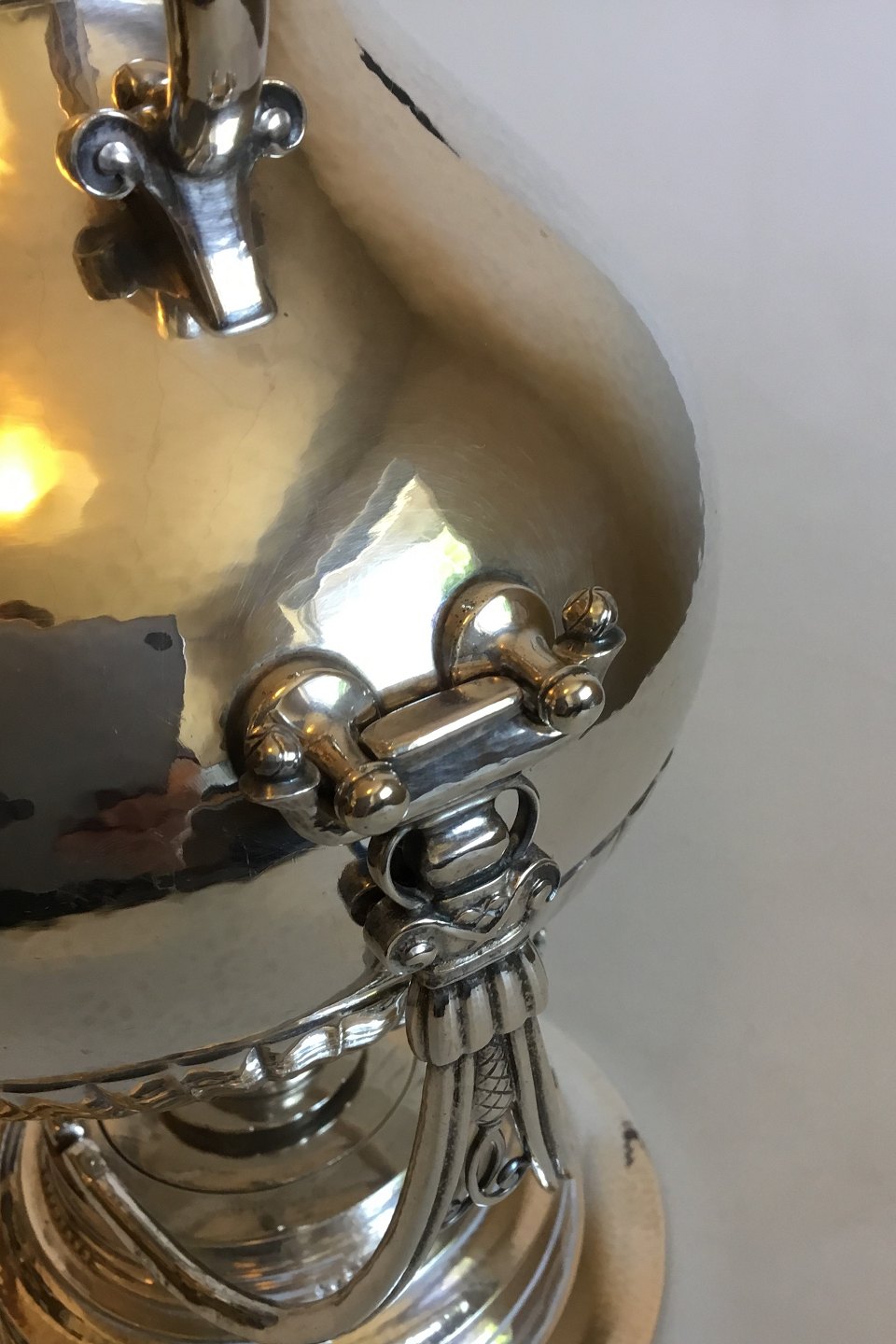 Georg Jensen Sterling Silver Cosmos Swing Tea Kettle no. 45. From 1925-1933. Measures 34 cm / 13 05/64 in. x 20 cm / 7 7/8. Weighs 1763 g / 62.20 oz.