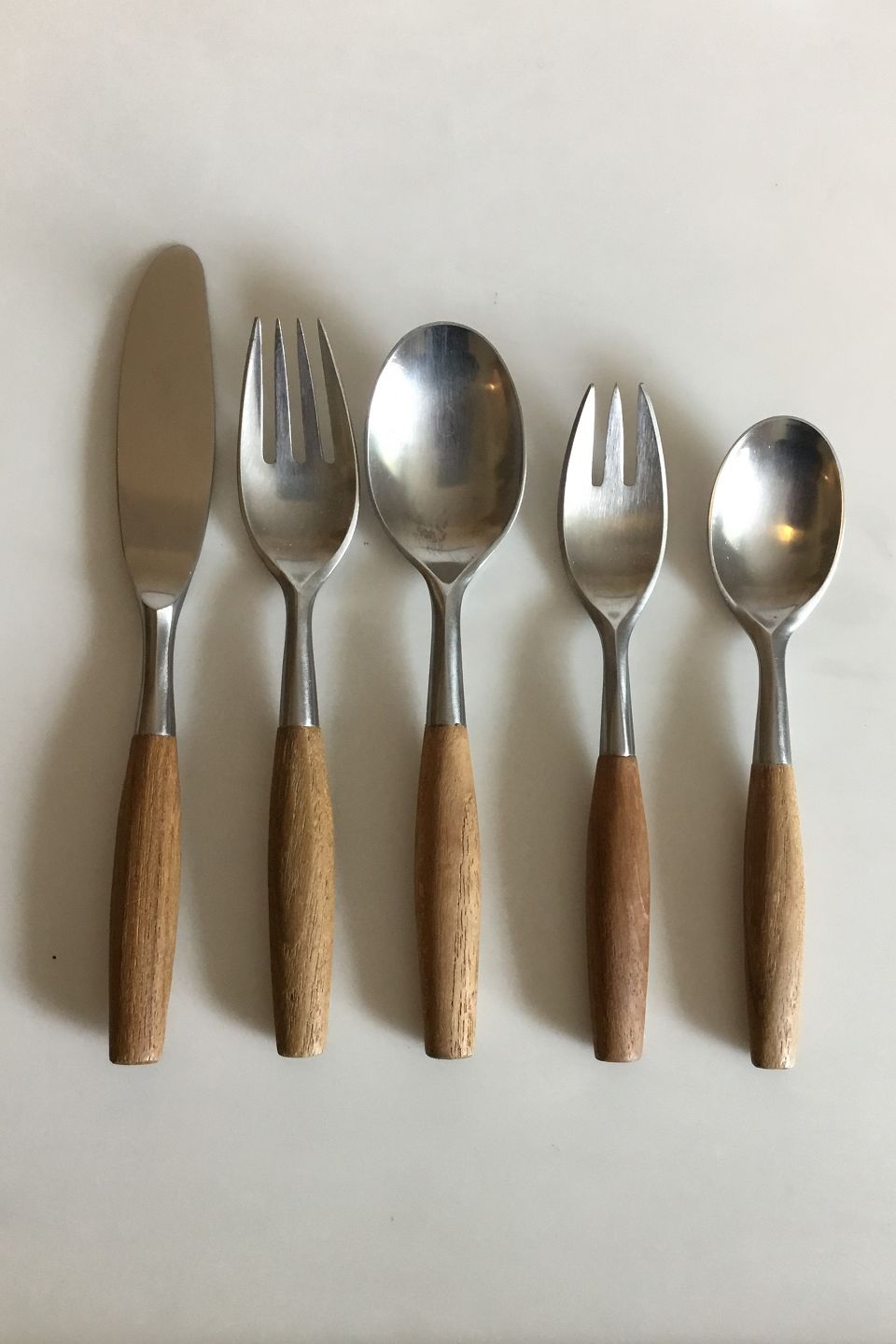 Fjord IHQ Quistgaard Steel and Teak Flatware Set for 12 People. 60 Pieces. The set consists of the following pieces: