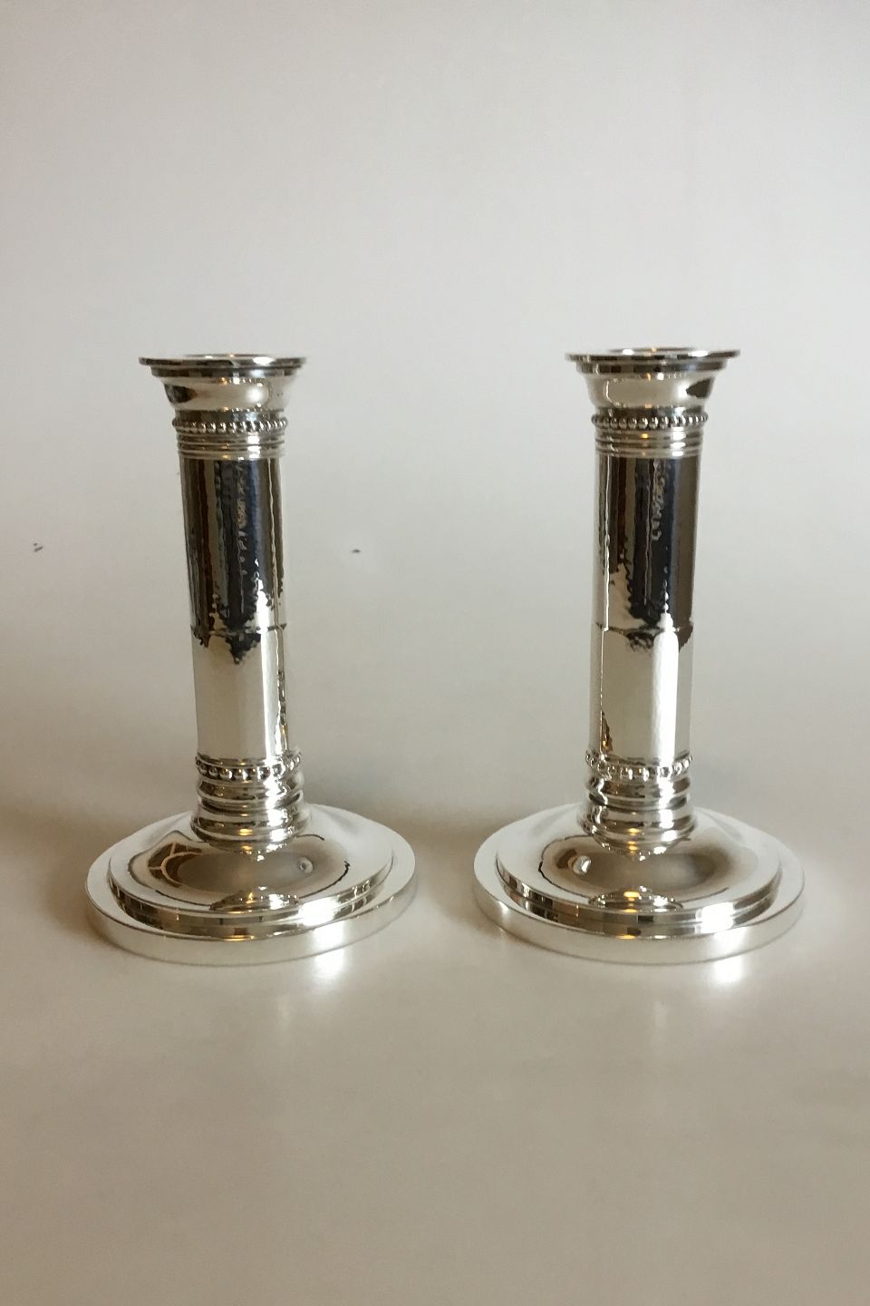 Georg Jensen Sterling Silver A pair of Candlesticks No 454A. Designed by Johan Rohde. Measures combined 15.5 cm / 6 7/64 in. Weighs 820 gram / 28.92 oz. From after 1945
