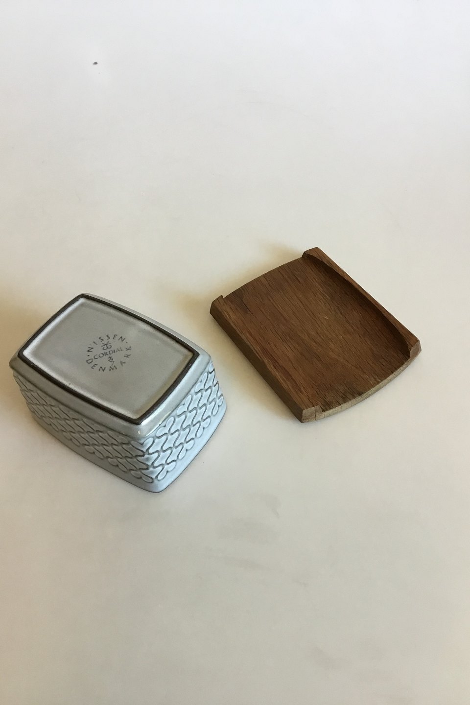 Bing & Grondahl / Kronjyden Cordial Grey Butter Dish/Bowl with Teak Lid No 682. Measures 12 cm / 4 23/32 in. x 8.5 cm / 3 11/32 in. x 6.5 cm / 2 9/16 in.