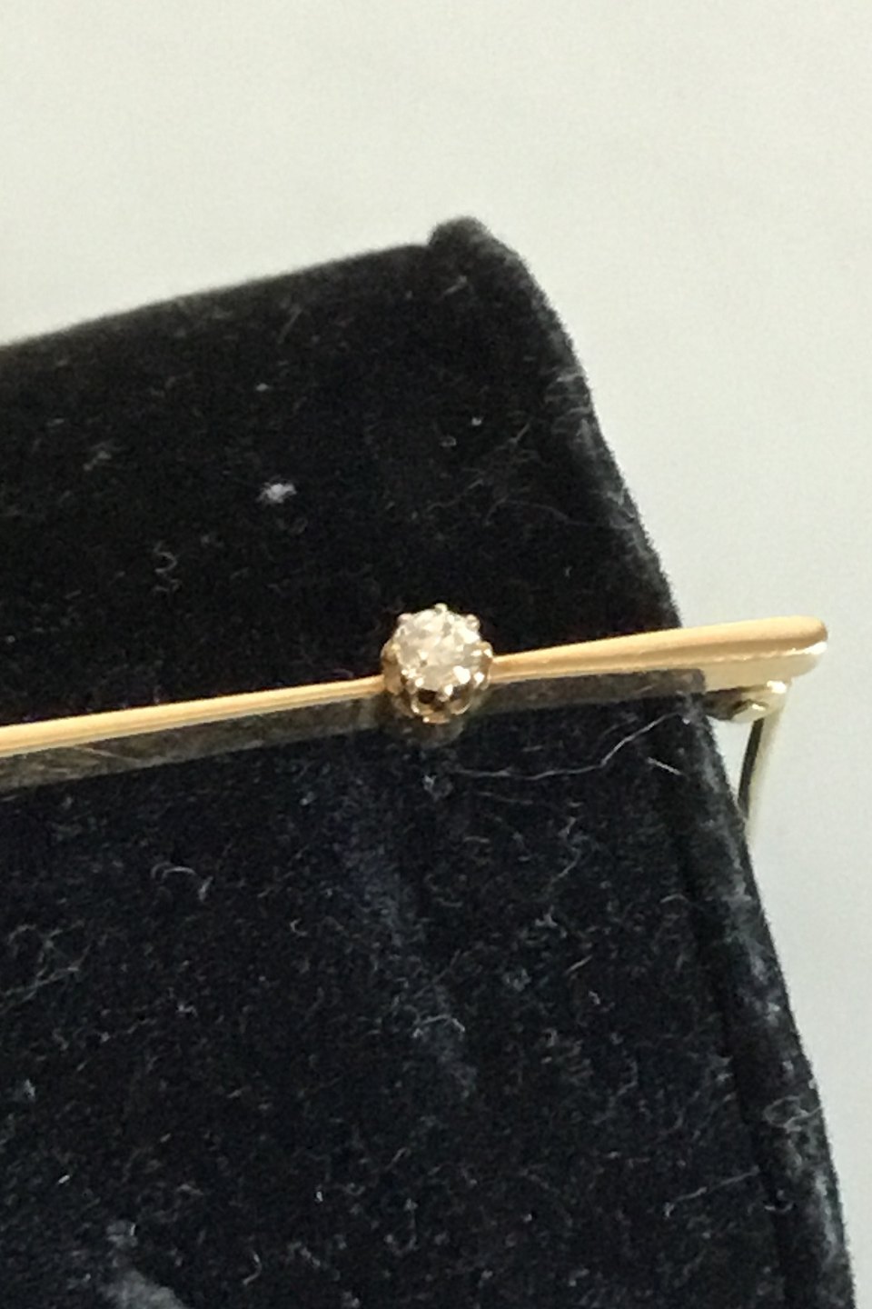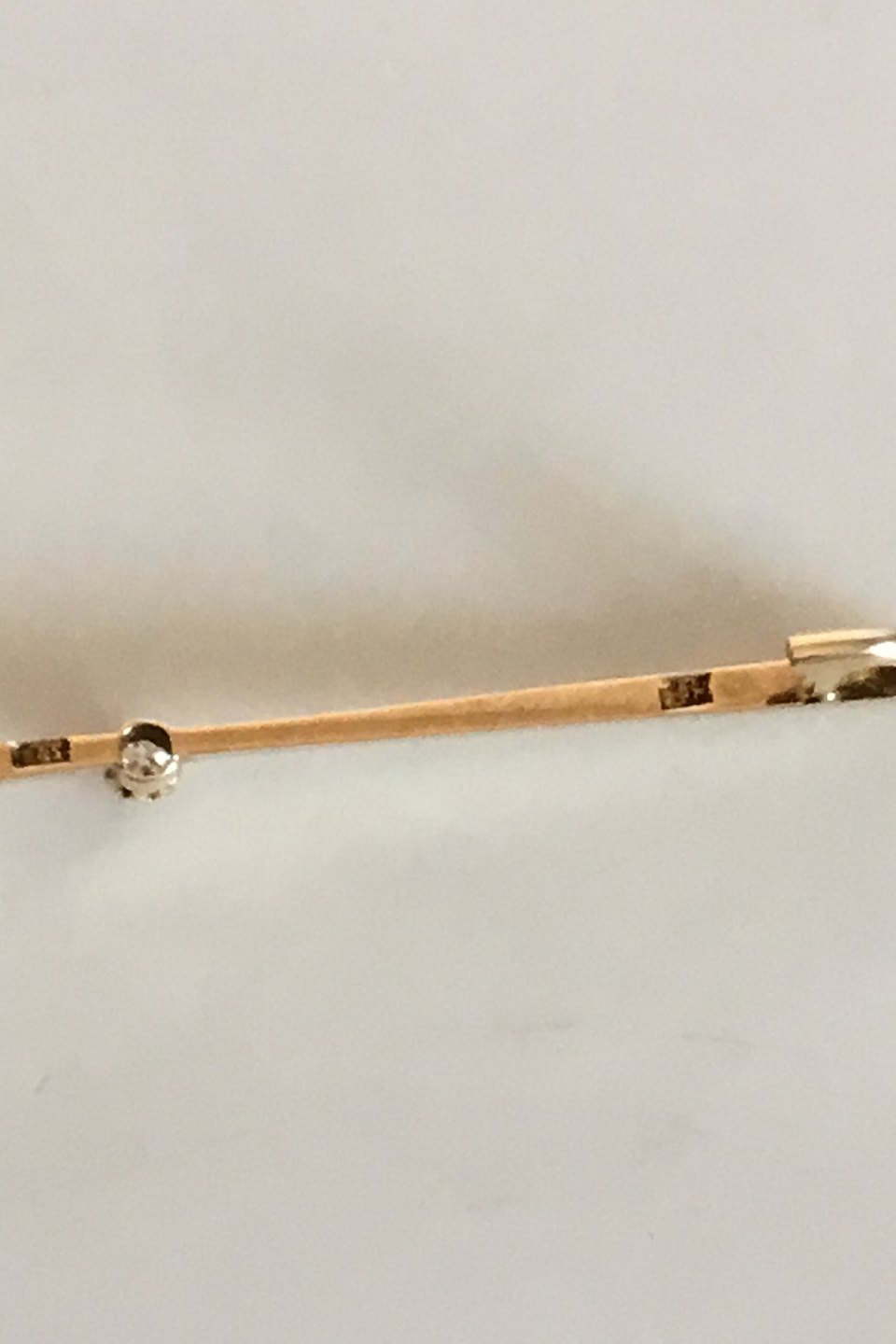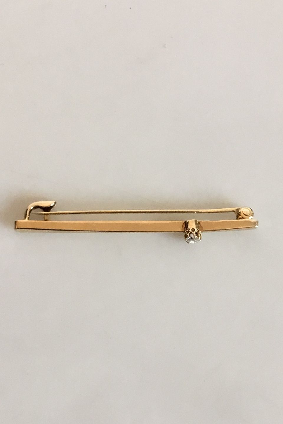 Brooch in 14K. Gold with Brilliant. Measures 4.8 cm / 1 57/64 in. Weighs 2.48 g / 0.09 oz.