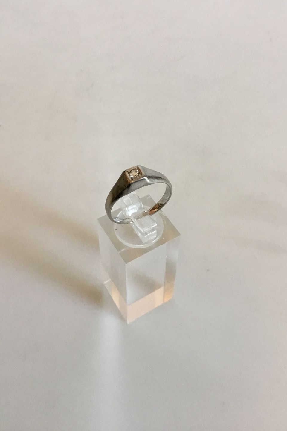 Ring in 14K White Gold with Brilliant. Ring size 59 / US 9 1/4. Weighs 4.43 g / 0.16 oz. Stamped Br.J 585 (Bræmer-Jensen)