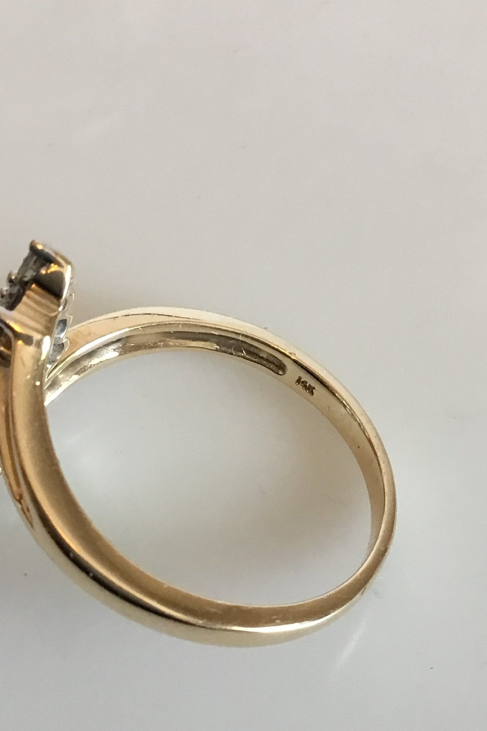 Gold ring in 14K with 16 small stones. Ring size 54 / US 7 1/4. Weighs 3.08 g / 0.11 oz. Stamped ERC 585 (Elisabeth Rosenberg Christensen)