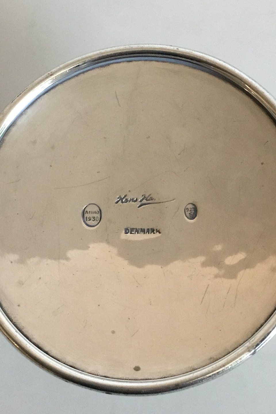 Hans Hansen Lid and Honey Spoon in Sterling Silver. Anno 1935. Measures Lid: 6.6 cm / 2 19/32 in. Spoon: 15.5 cm / 6 7/64 in. Weighs combined 88 g / 3.10 oz.