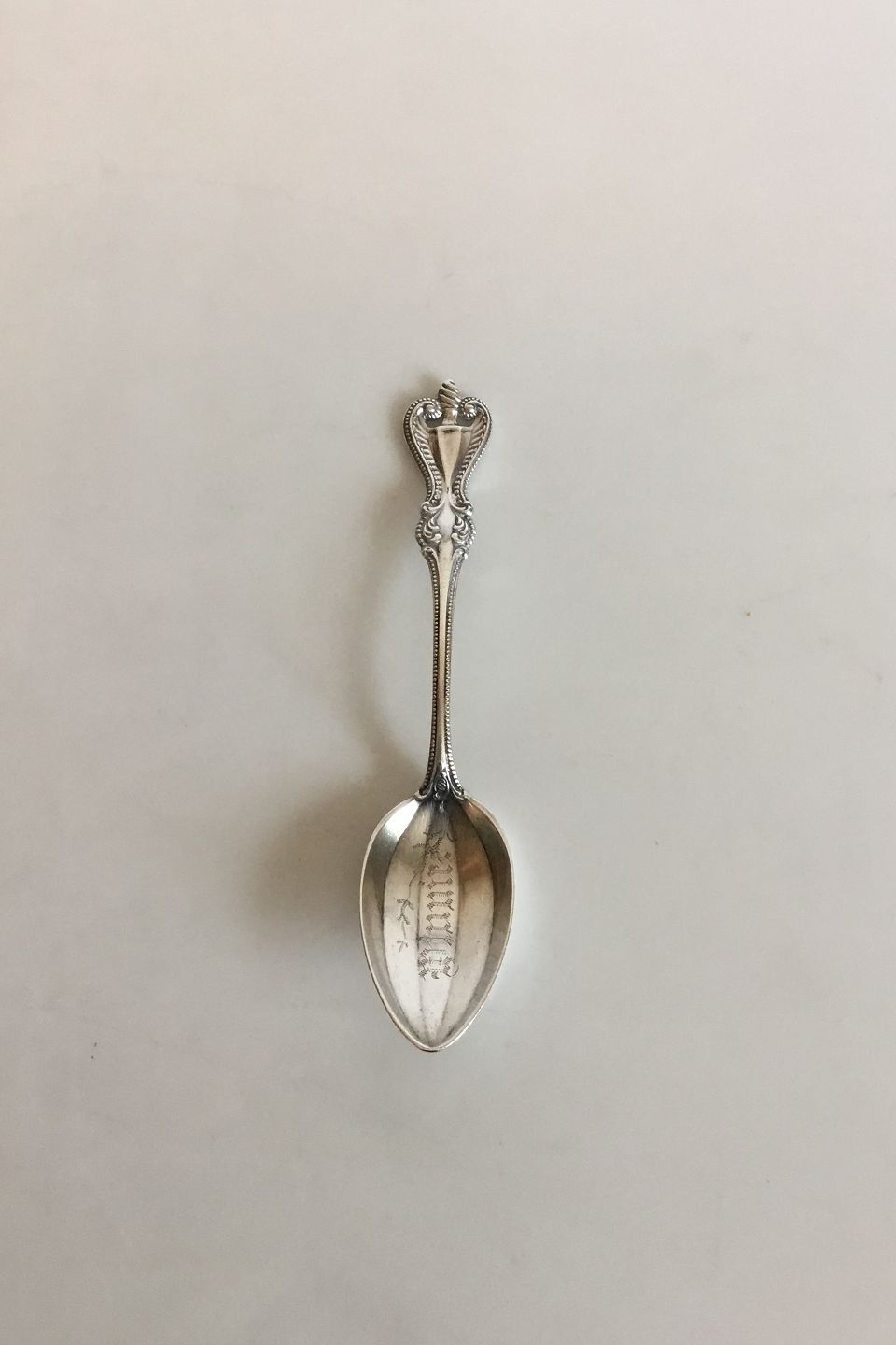 Tea Spoon in Sterling Silver. With Engraving. Meaures 14.3 cm / 5 5/8 in.