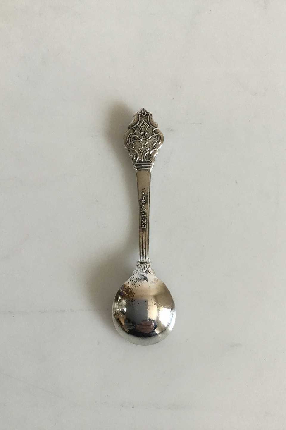 Salt Spoon Silver Plated. Marked EX.PR.NS. Measures 6.4 cm / 2 33/64 in.