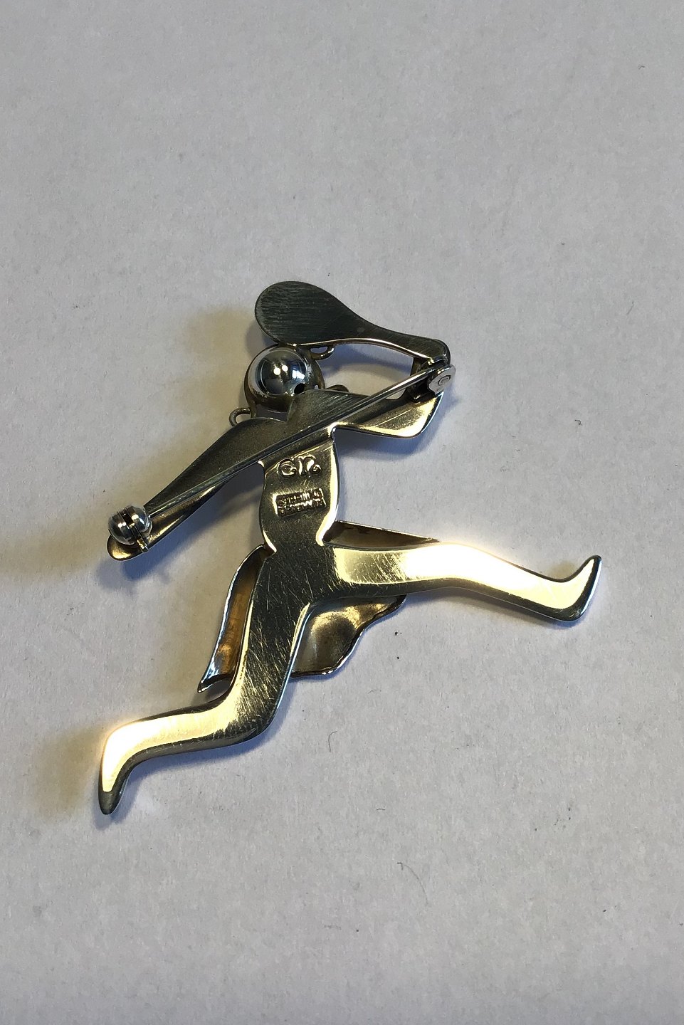 Evald Nielsen Sterling Silver Brooch Tennisplayer H 4.8 cm/1.88 inches Weight 13.9 gr/0.49 oz.