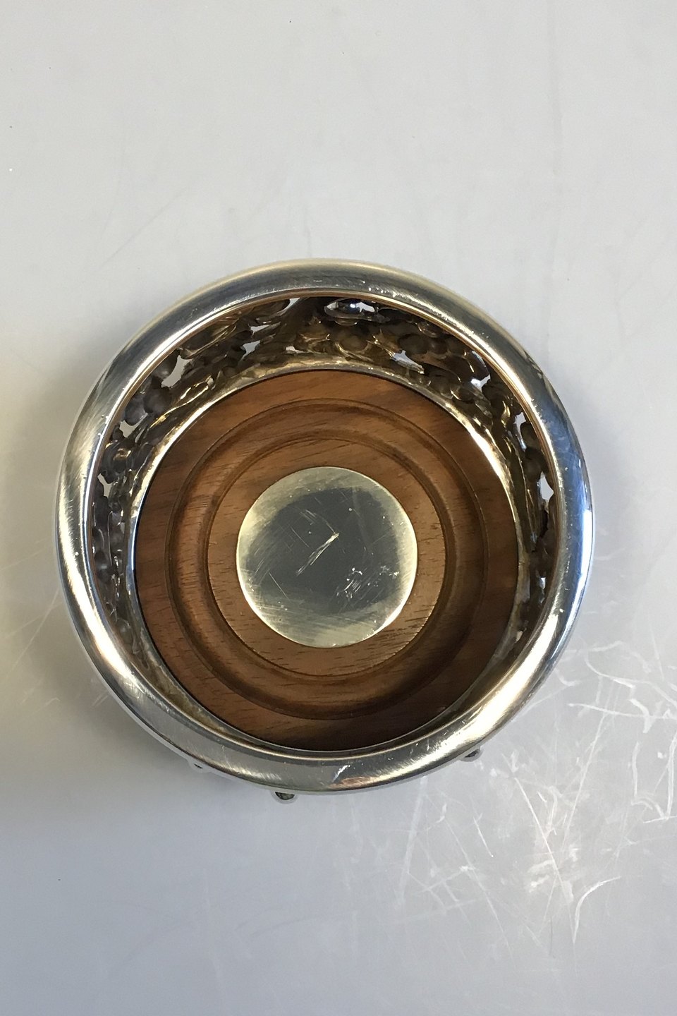 Evald Nielsen Sterling Silver Wine Coaster with rosewood bottom and silverplate for inscriptions H 7,5 cm/2.95 inches Diam 11,0 cm/4.33 inches Weight 550 gr/19,4 oz.