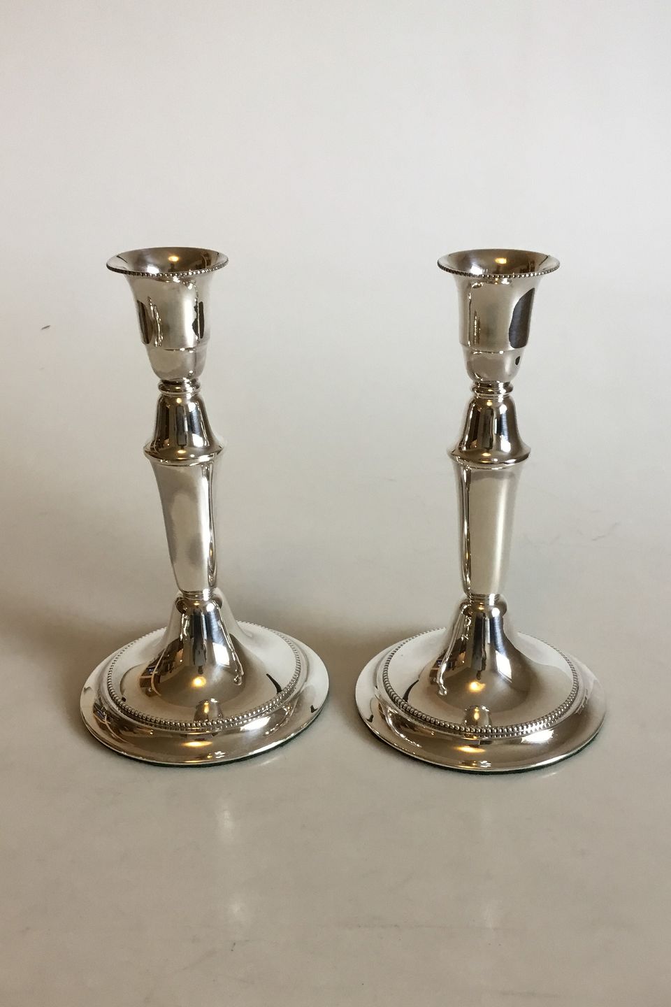 English Silver House Copenhagen Sterling Silver Pair of Candle Holders. Measures 17 cm / 6 11/16 in. Weighs 405 g / 14.45 oz. Bottom Filled