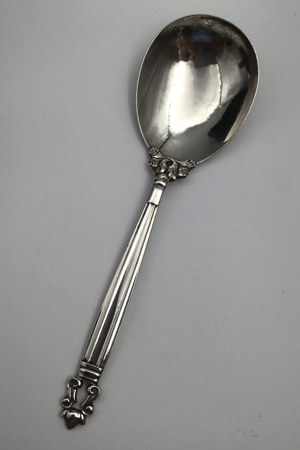 Georg Jensen Sterling Silver Medium Serving Spoon Acorn No 113. Measures 22.3 cm (8.77 inch)