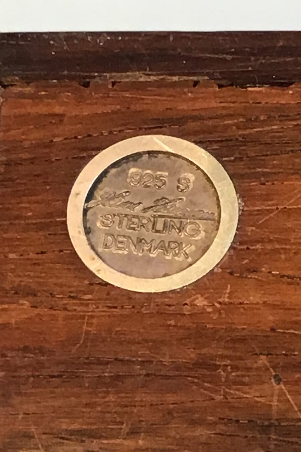 Hans Hansen Rosewoodbox with silverinlay L 11 cm/4.33 inches, W 8,5 cm/ 3.34 inches H 4,8 cm/1.88 inches (Small nick in lid)