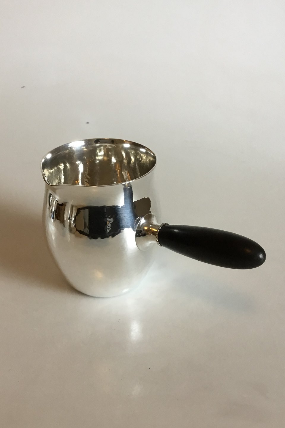 Georg Jensen Sterling Silver Water Jug with Handle of Ebony No 80 E. Measures 11.5 cm / 4 17/32 in. Weighs 360 g / 12.70 oz.