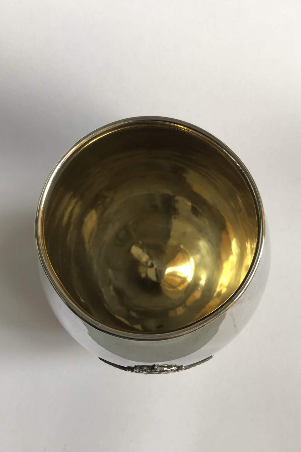 A Dragsted Silver Beaker Eggshaped on 3 ball feet, "Kongelig Dansk Yachtklub"(Royal Danish Yachtclub)Gilded inside. H 8.5 cm/3.34 "84.3 gr/2.97 oz.