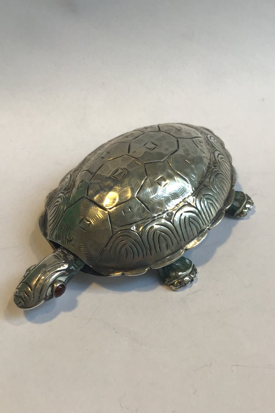 Turtle of silver with a moving head. Partially pseudo-hallmarked. L. 9.5 cm. 20th century