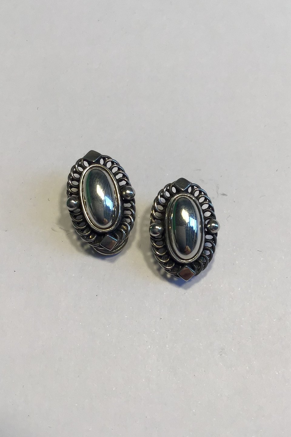 Georg Jensen Sterling Silver 2004 Annual Earclips with silver stone Weight 9.7/0.34 oz