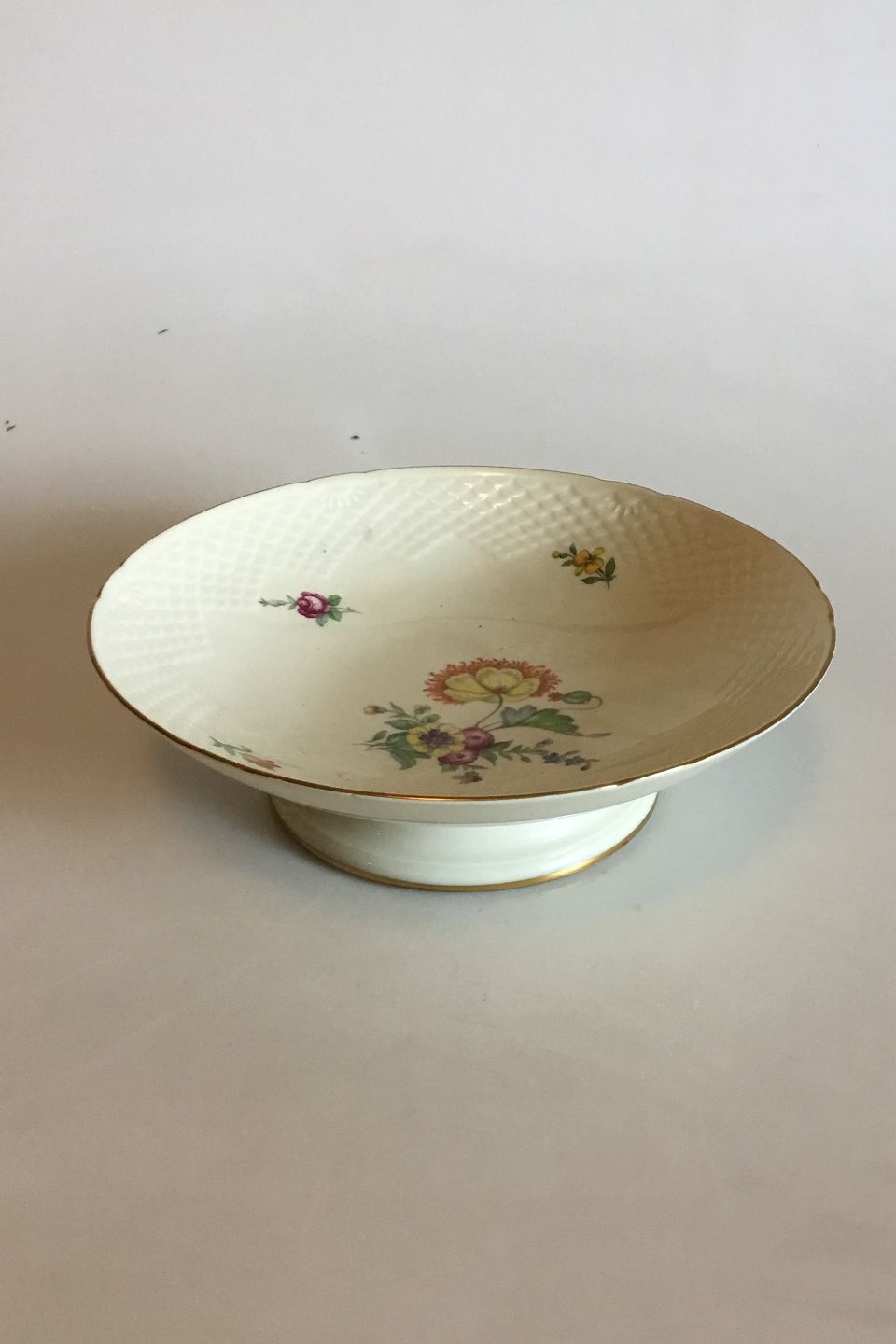 Bing & Grondahl Saxon Flower Footed Cake Tray No 206. Measures 7 cm / 2 3/4 in. x 24 cm / 9 29/64 in. dia. White Service with Flowers and Gold Rim