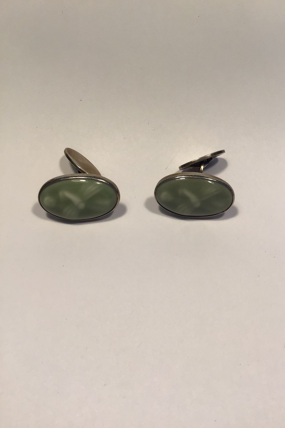 Royal Copenhagen Jais Nielsen Cuff Links from Dragsted Silversmithy Celadon glaze Measures 1.6 cm x 2.6 cm /0.62" x 1.02" /Original Box