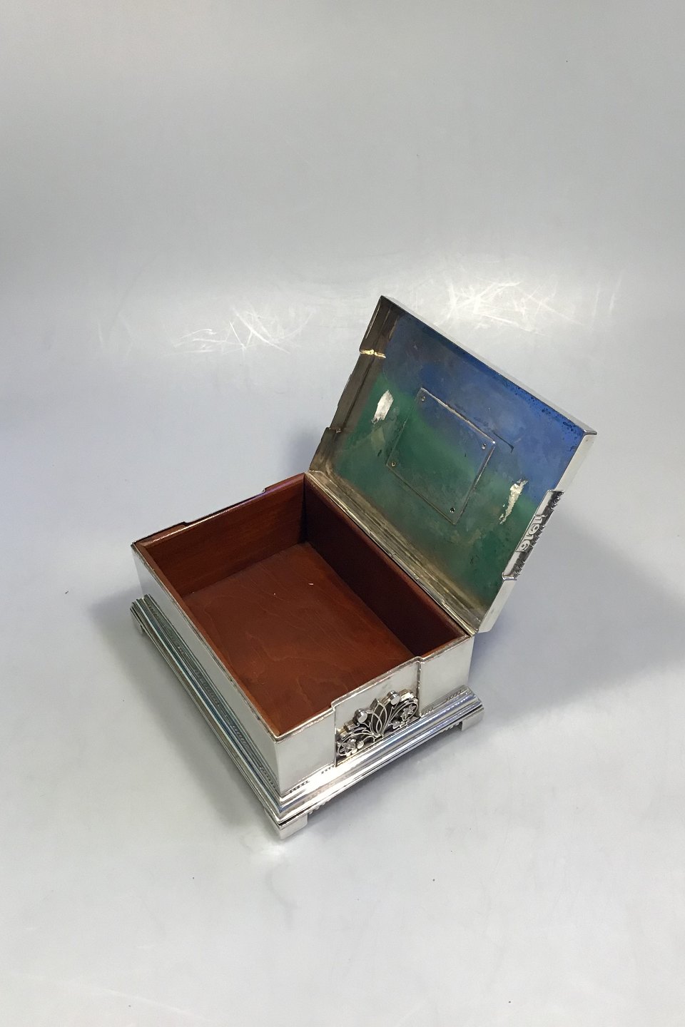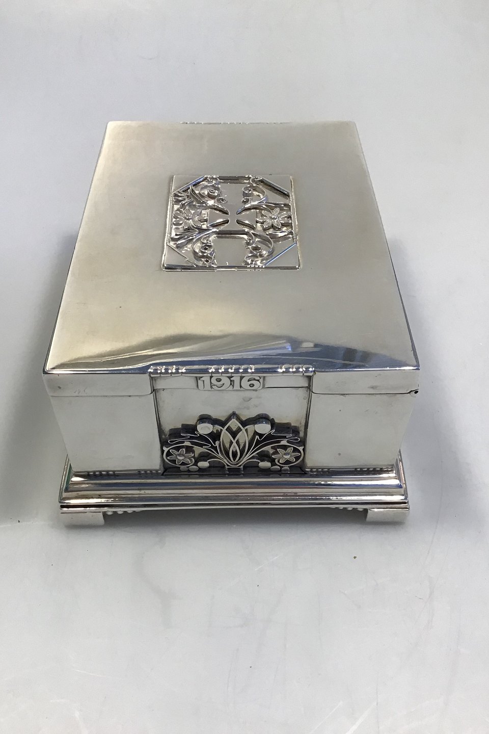 Georg Jensen Silver Cigar Box/Lidded Box wood lined 1916 designed by Johan Rohde One side panel dated 1866 and the other dated 1916, this piece was almost certainly commissioned to commemorate the 50th Anniversary of the founding of 'Det Forenede Dampskibs-Selskab' on 11 December 1866.