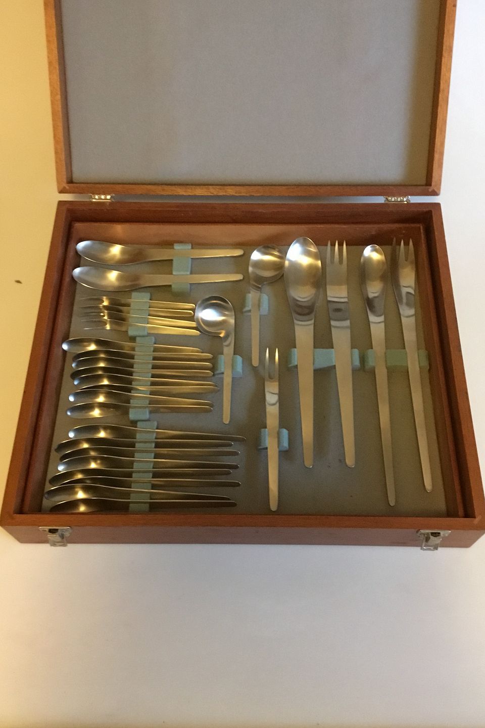 Arne Jacobsen-Anton Michelsen Stainless Steel Large Flatware Set in Wooden Box