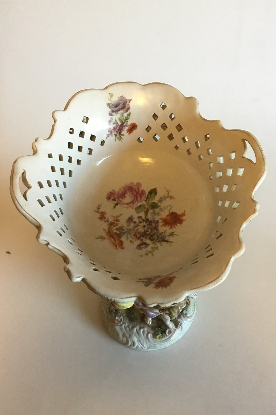Large German Fruit Plate of Porcelain, Plaue / Schierholz & Sohn, 1916. Fluted and richly modeled with putty, rocailler and pousing flowers, decorated in colors and gold. Measures 38 cm / 14 61/64 in. x 30 cm / 11 13/16 in.. Some pousing flowers with small chips.