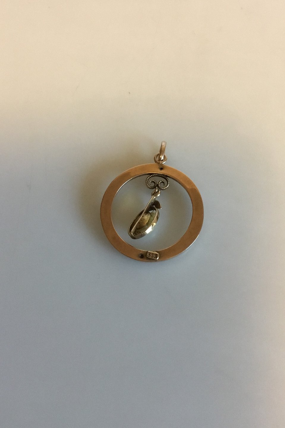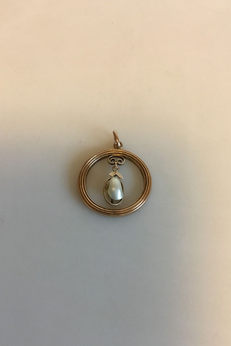 Pendant in 8K gold with pearl shell. Measures 2.1 cm / 0 53/64 in. Weighs 1.2 g / 0.04 oz.
