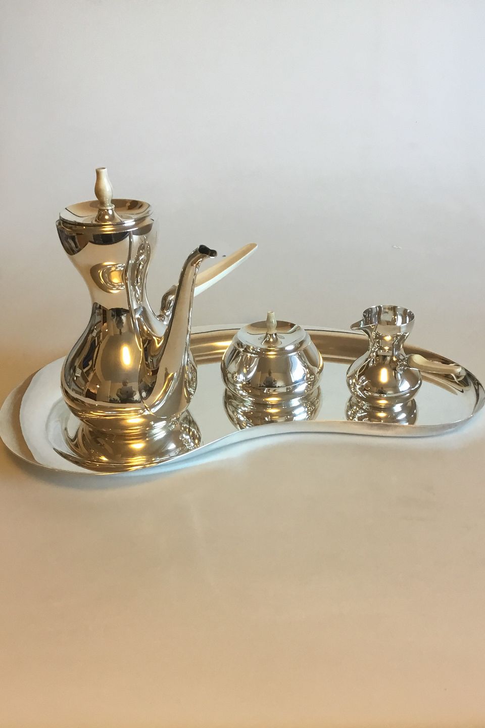 Cohr/Cartier Sterling Silver Coffee Set with Handles of Ivory. Designed by Hans Bunde