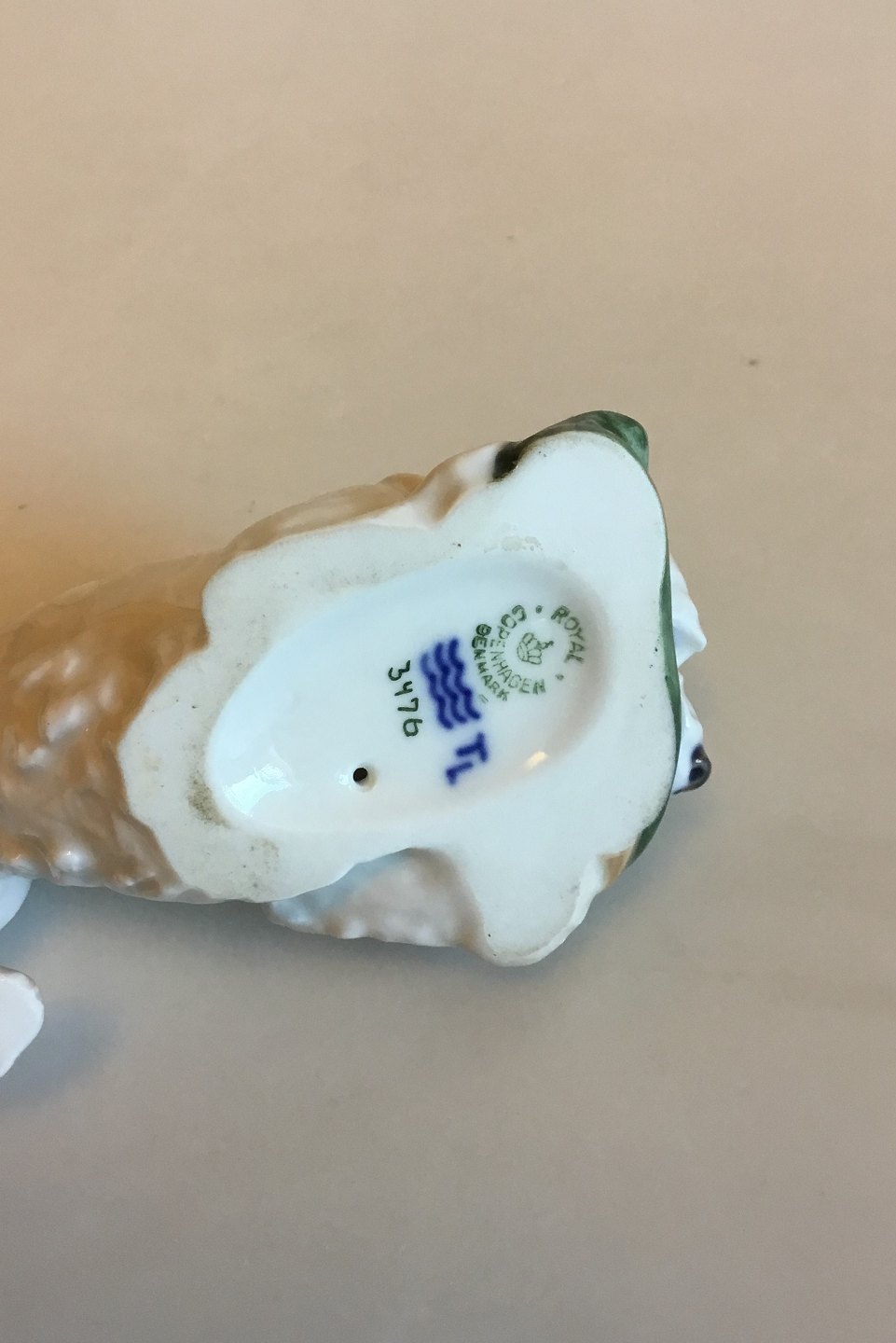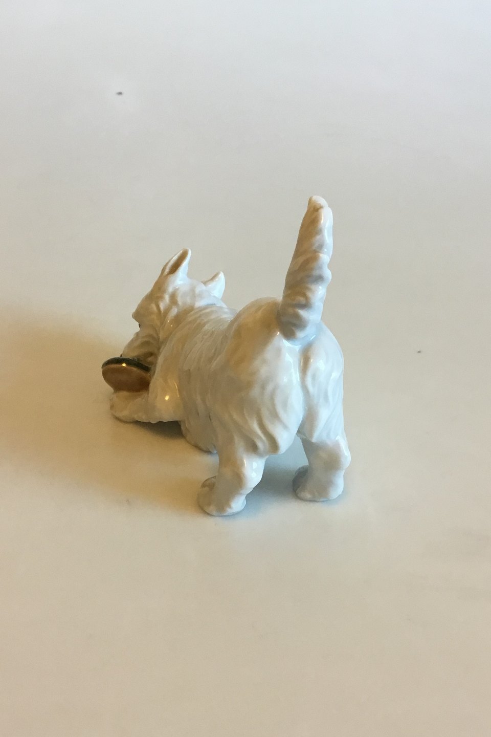 Royal Copenhagen Figurine of Terrier with Slipper No 3476. Designed by Ada Bonfils. Measures 11 cm / 4 21/64 in.