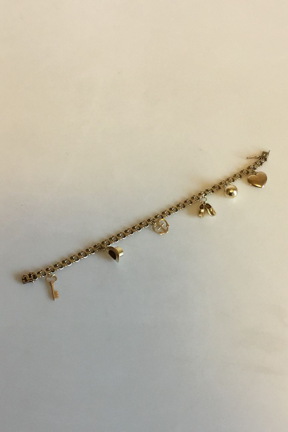 Bismarck Bracelet with Charms in 8K Gold. Measures 19 cm / 7 31/64 in. Weighs 13.3 g / 0.47 oz. Stamped SAV. Heart, Ball, Clogs, Anchor / Heart, Hat and Key.
