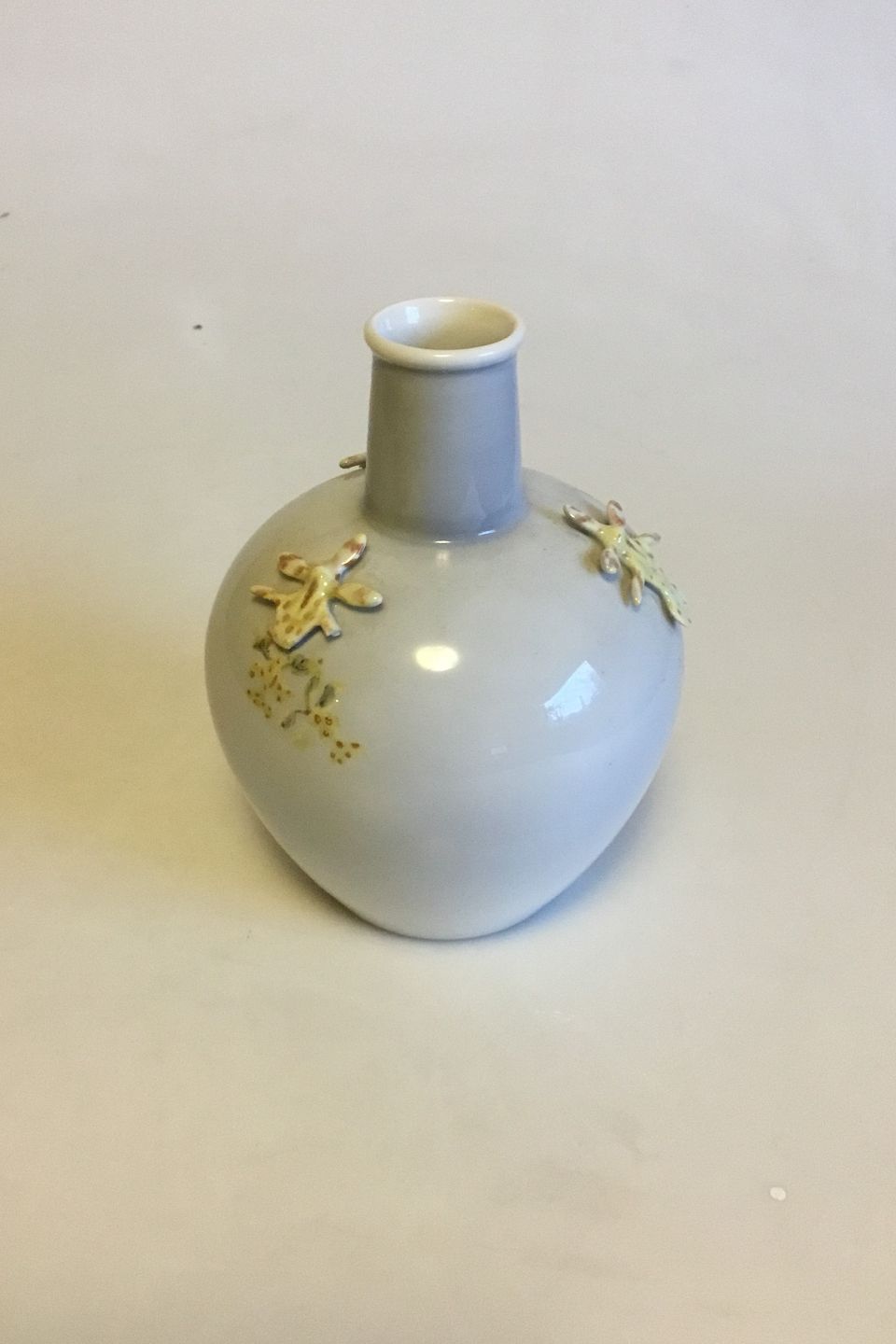 Royal Copenhagen Thorkild Olsen Vase decorated with Orchids. Measures 17.5 cm / 6 57/64 in. Three small Petals have broken.