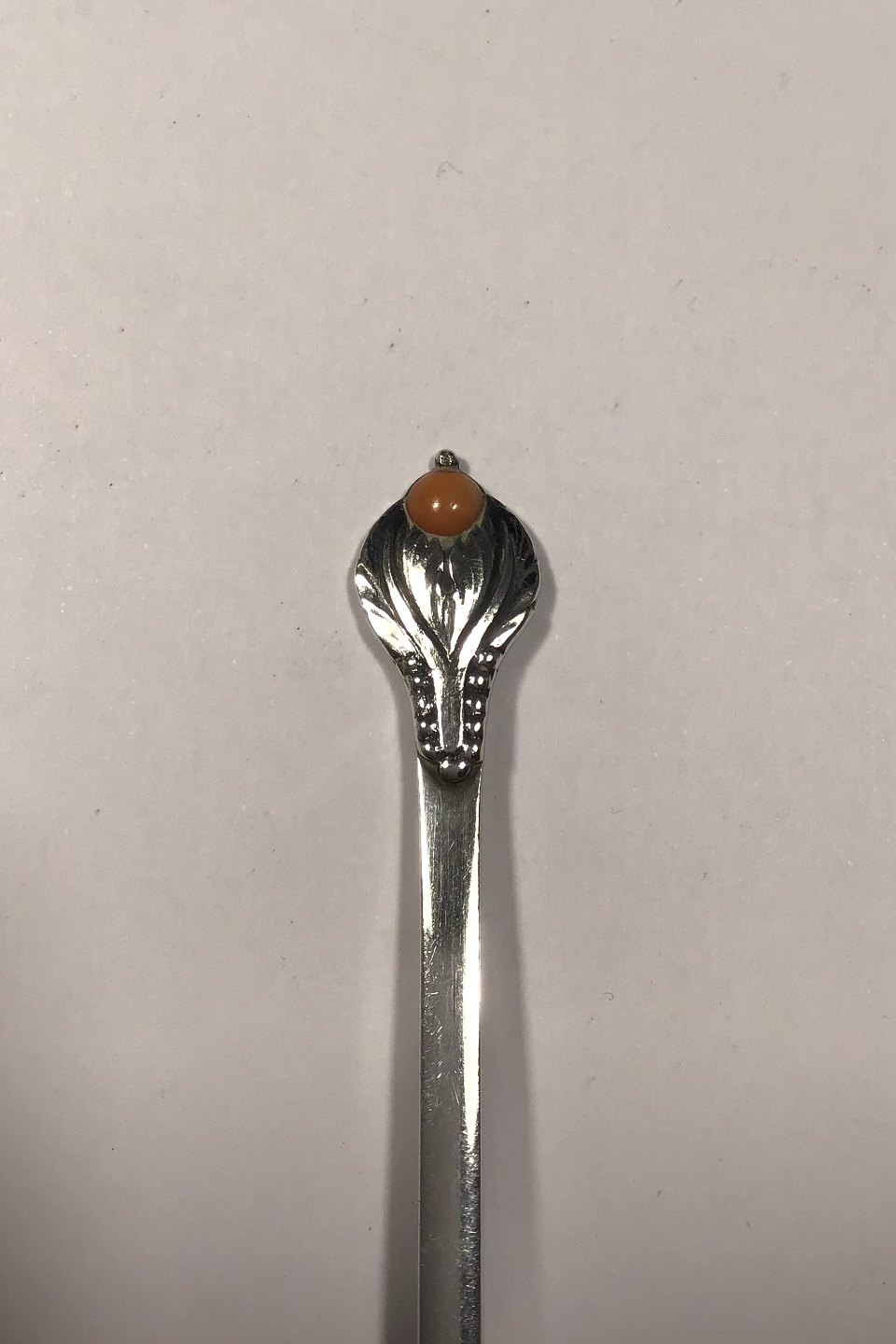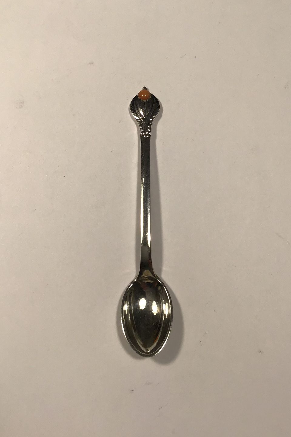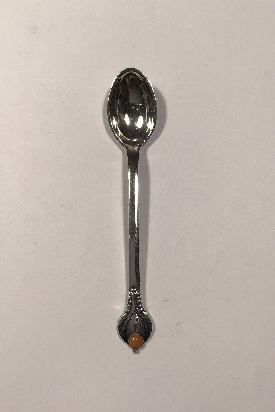 Evald Nielsen Silver Coffee Spoon No 3. Measures 11,3cm. Decorated with amber stone