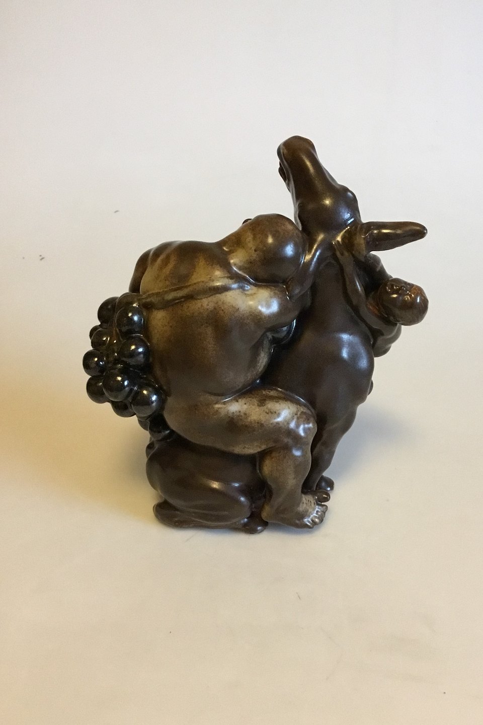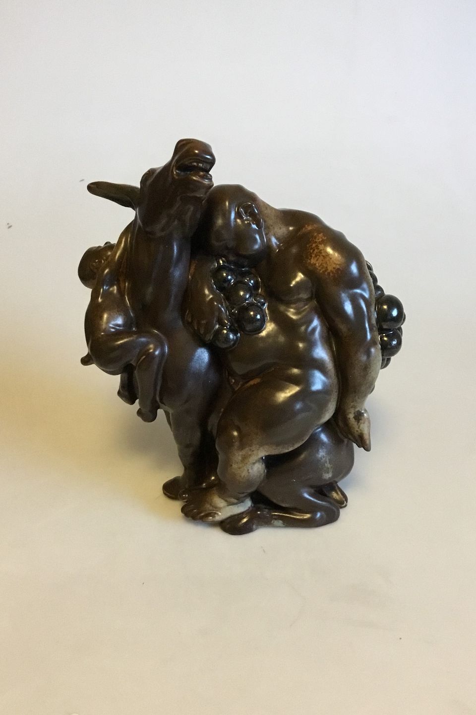 Bing and Grondahl Figurine by Kai Nielsen - Bacchus with Donkey and Faun No. 4026. Designed in approx. 1915. Measures 23 cm / 9 1/16 in. x 19 cm / 7 31/64 in.