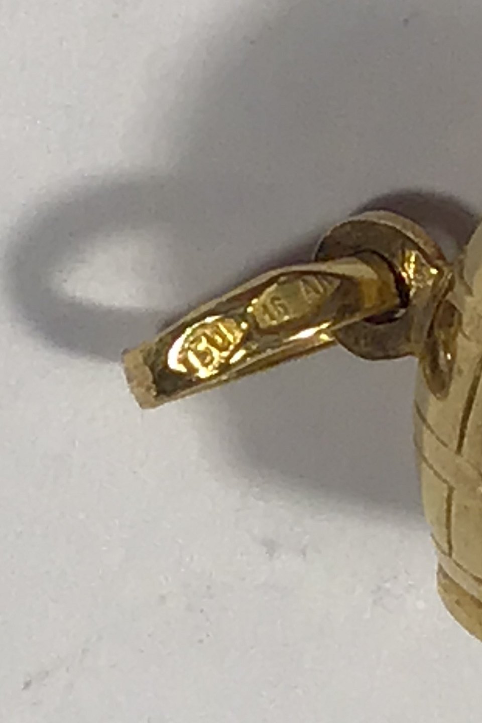 Goldcharm 18 kt gold Barrel-shaped Measures 0.9 x 1.2 cm/0.35" x 0.47" Weight 1.2 gr/0.04 oz