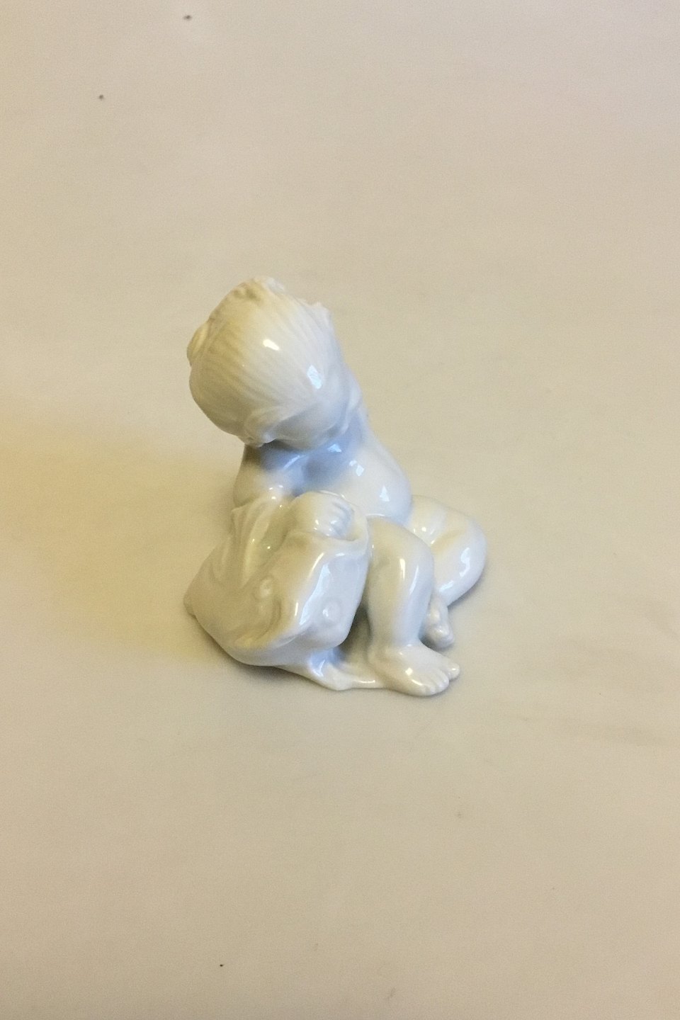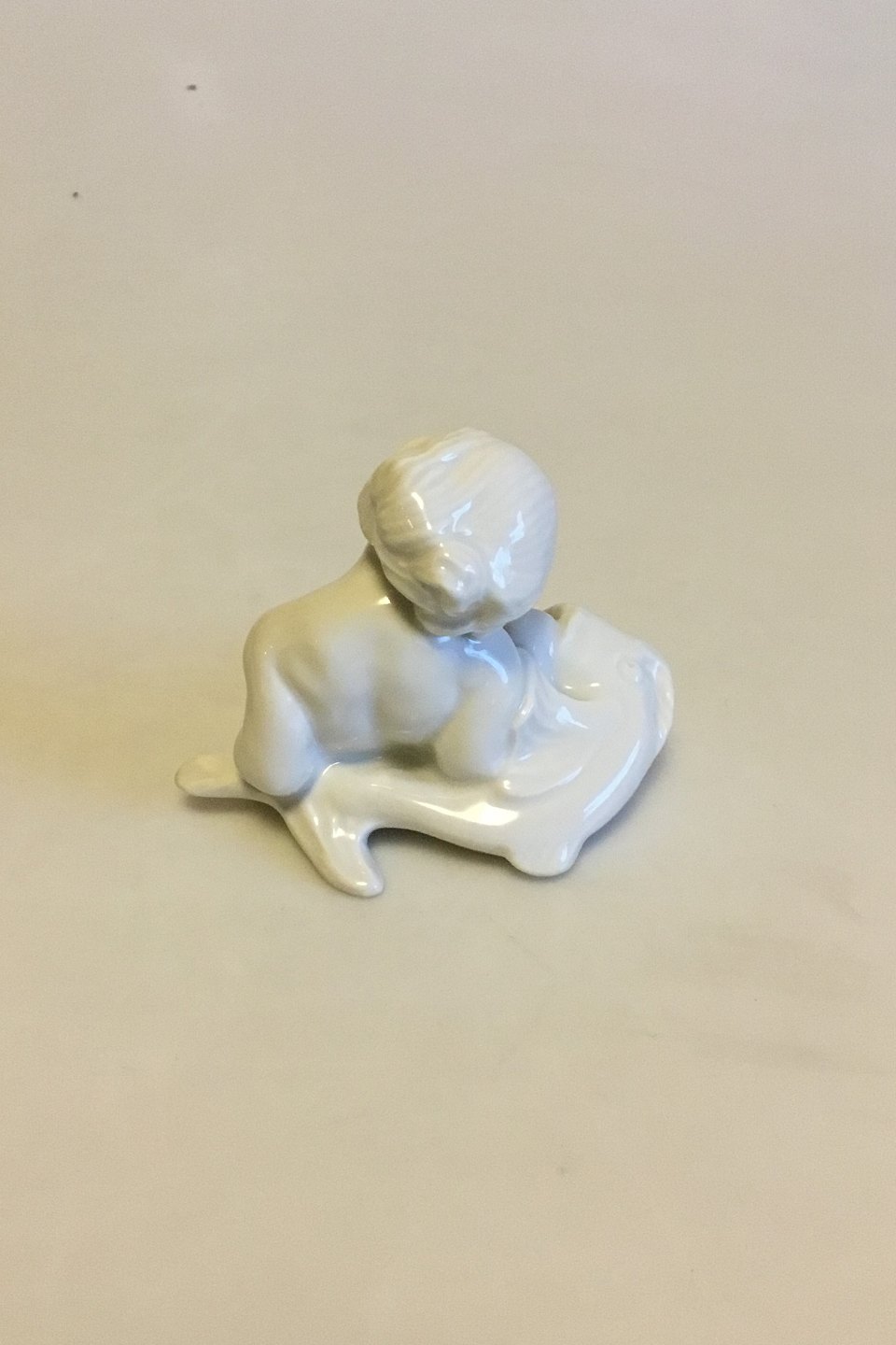 Bing &Grondahl Blanc de Chine Figurine of Child leaning against Fish No 4037. Designed by Kai Nielsen. Measures 8 cm / 3 5/32 in.
