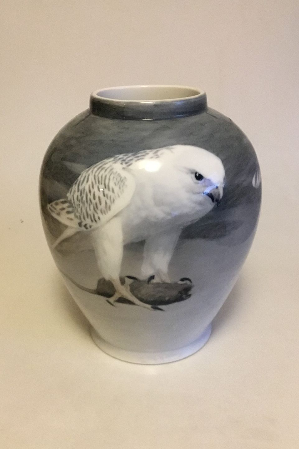 Royal Copenhagen Art Nouveau Unique Vase decorated with Gyrfalcon and rat No 8984. Designed by Vilhelm Th. Fischer September 1904. Measures 29.5 cm / 11 39/64 in. Has firing crack, see pictures