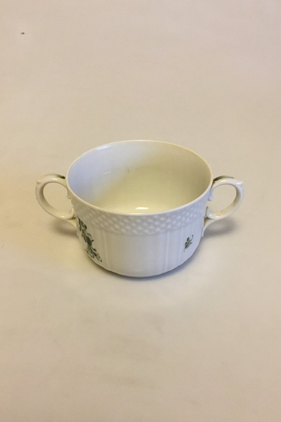 Royal Copenhagen Green Flower Curved Bouillon Cup No 1552. Measures 8.5 cm / 3 11/32 in. dia.