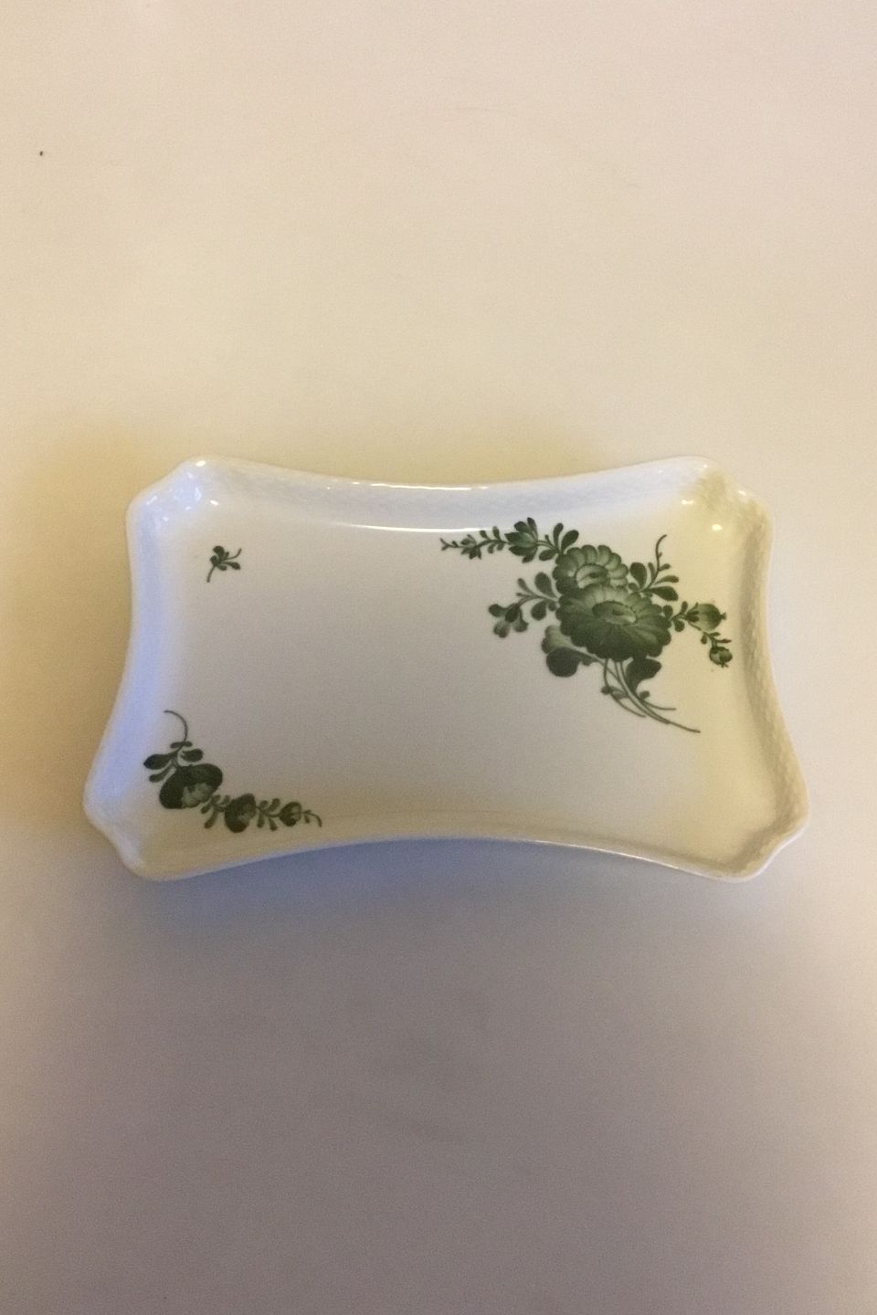 Royal Copenhagen Green Flower Curved Rectangular Dish No 1694. Measures 23.5 cm / 9 1/4 in. x 16.5 cm / 6 1/2 in.