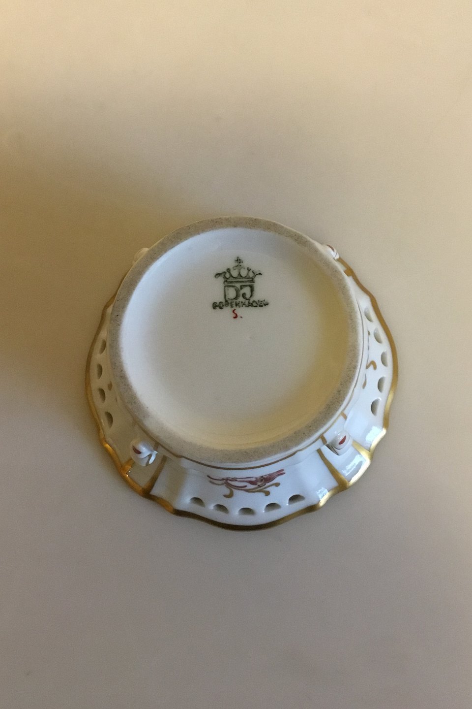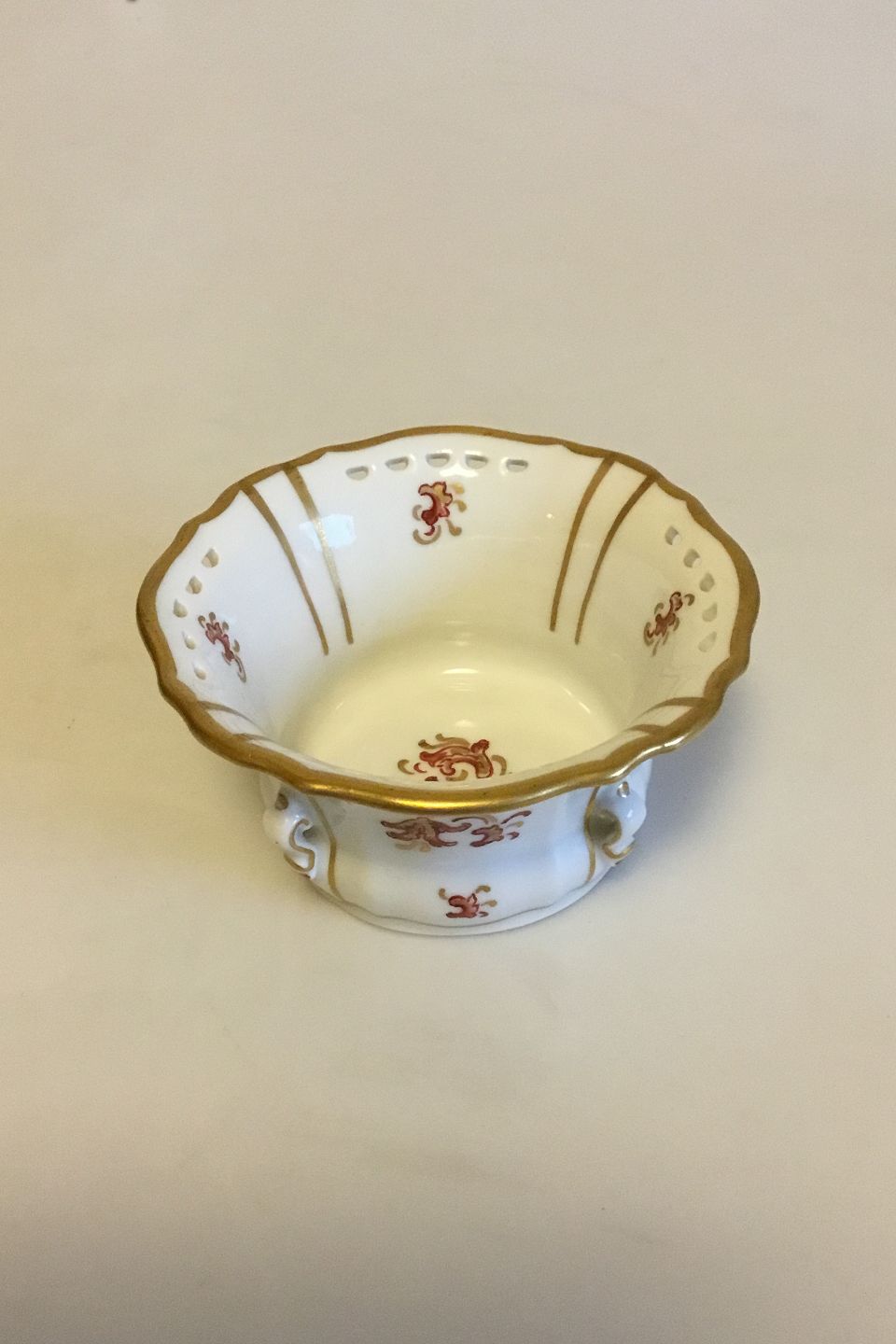 Dahl Jensen Dronning Sugar Bowl with Gold and Pierced Border. Measures 10.5 cm / 4 9/64 in.