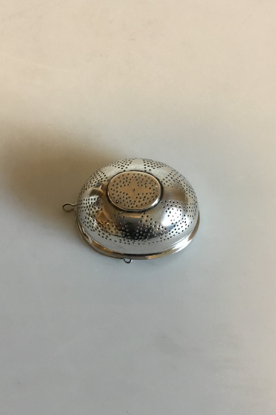 Silver Tea Strainer. Measures 6 cm / 2 23/64 in. x 5 cm / 1 31/32 in. Weighs 14.8 g / 0.52 oz.