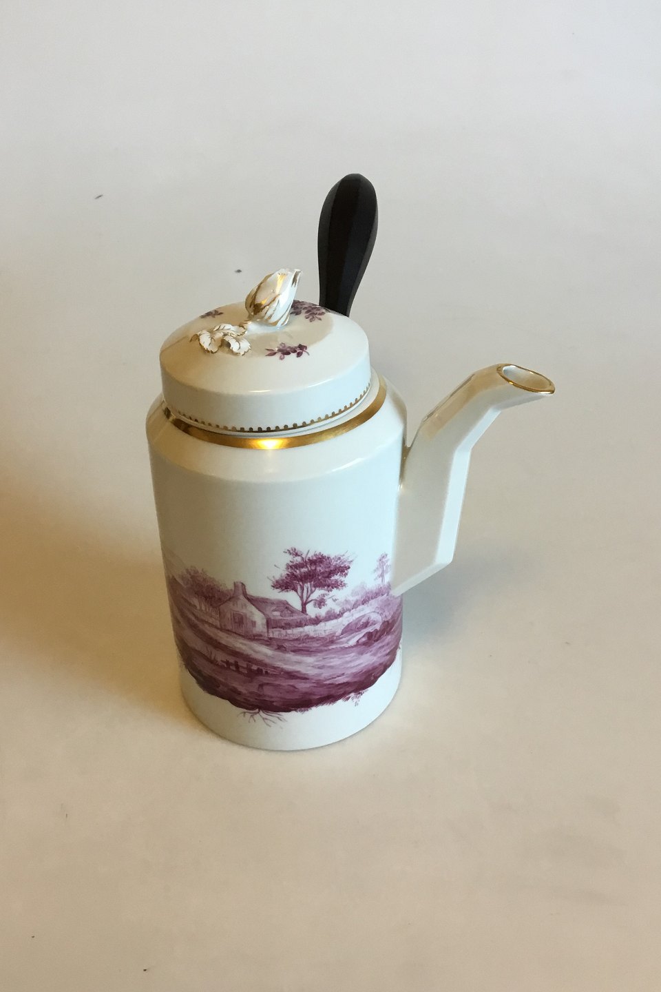 Royal Copenhagen Tete á Tete Coffee Set with Dark Rose decoration in overglaze. Consists of: Tray, Coffee Pot, Creamer, Sugar Bowl and a Coffee Cup